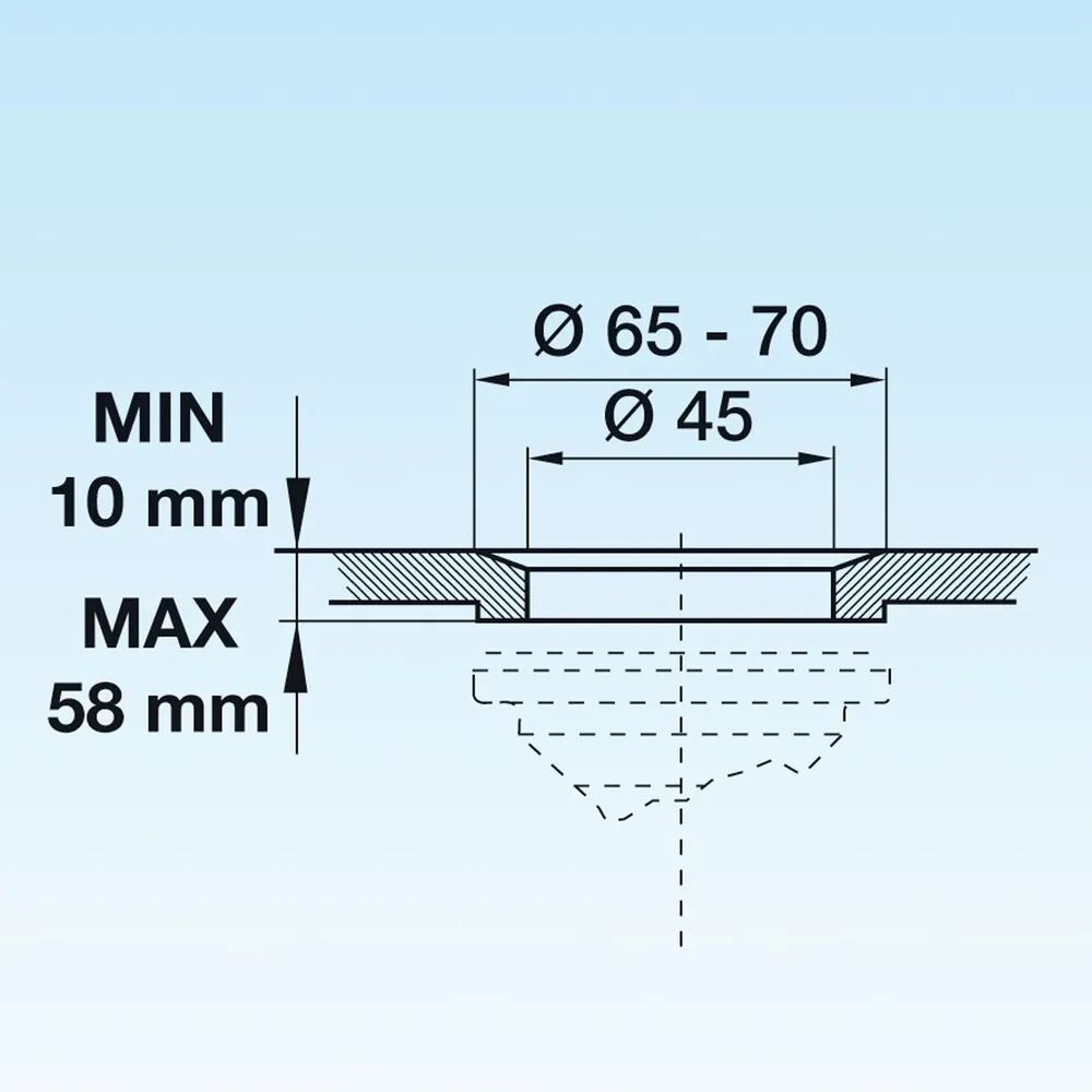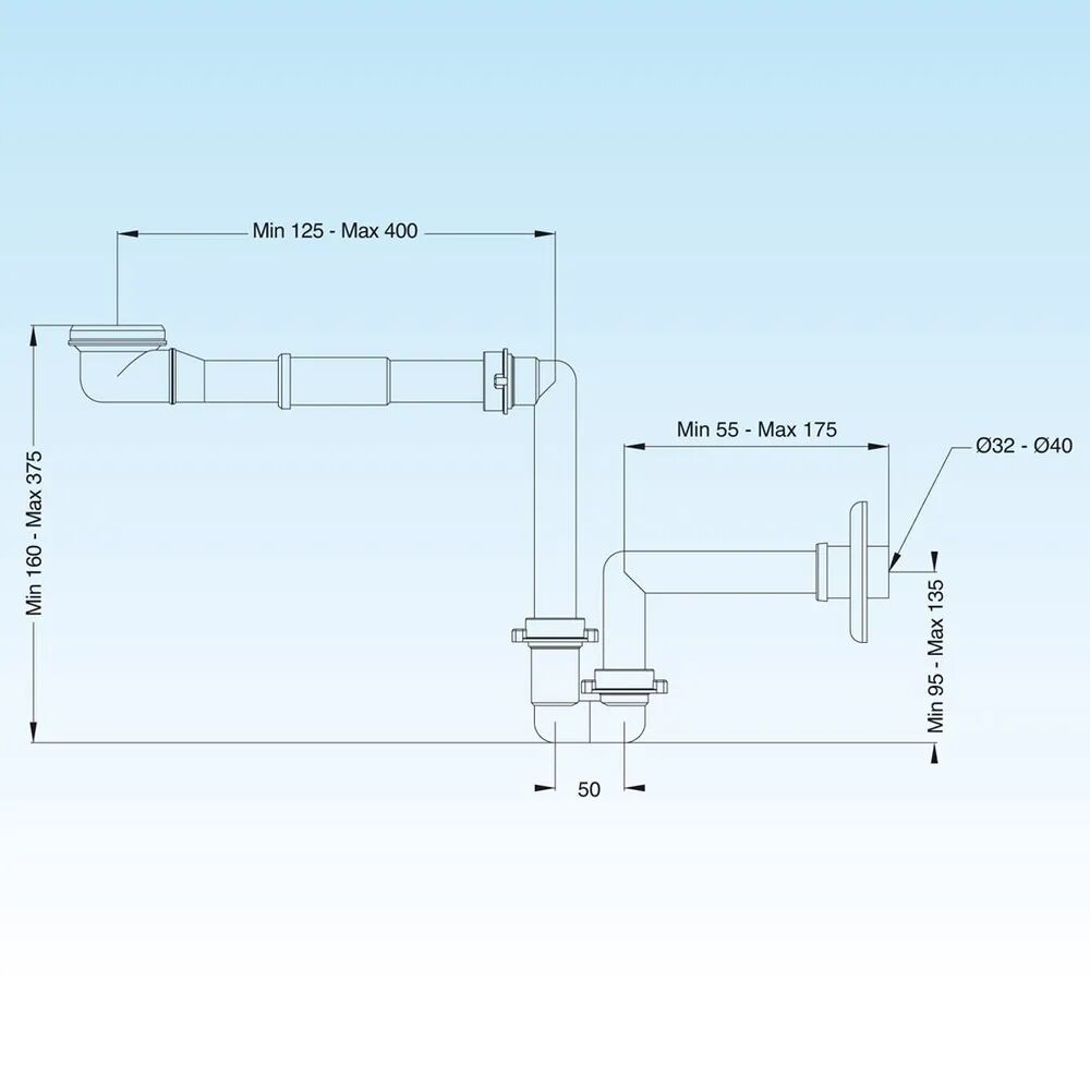 - Диаметр подключения к канализационной трубе 32-40 мм