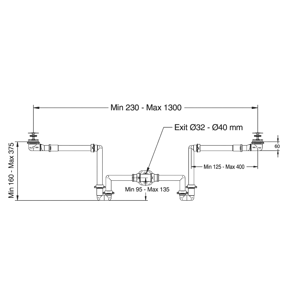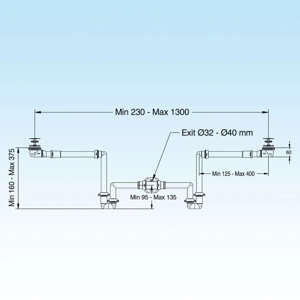 - Диаметр подключения к канализационной трубе 32-40 мм