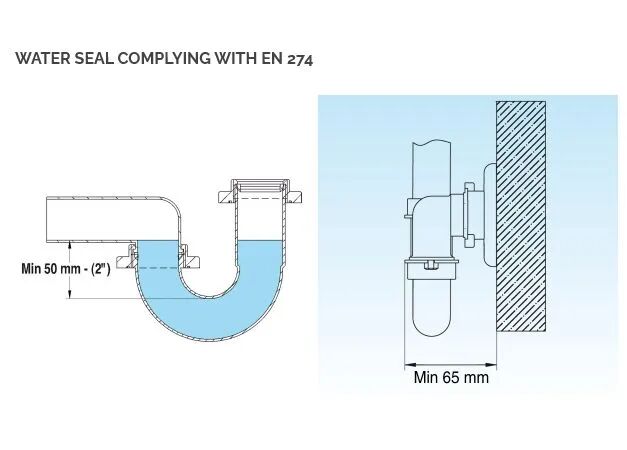 - Диаметр подключения к канализационной трубе 32-40 мм