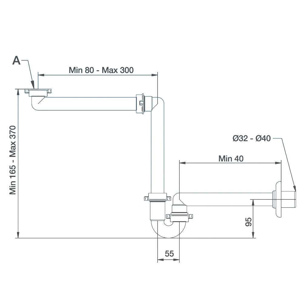 - Диаметр подключения к канализационной трубе 32-40 мм