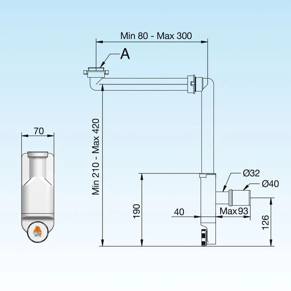- Диаметр подключения к канализационной трубе 32-40 мм.