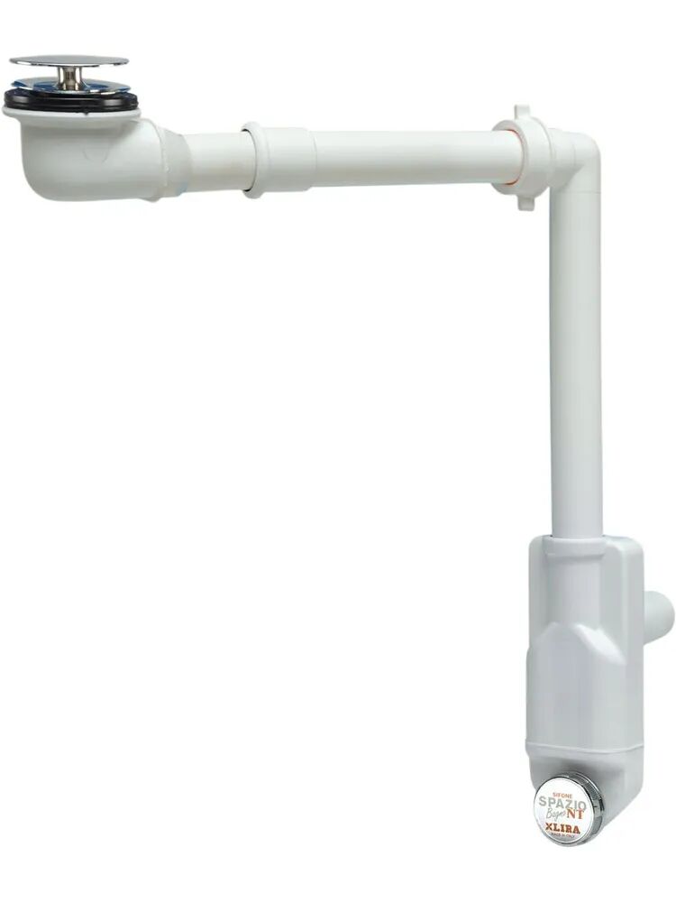 - Компактный сифон для умывальников. Конструкция сифона позволяет организовать отвод воды так, что обеспечивает экономию места внутри корпуса под раковиной