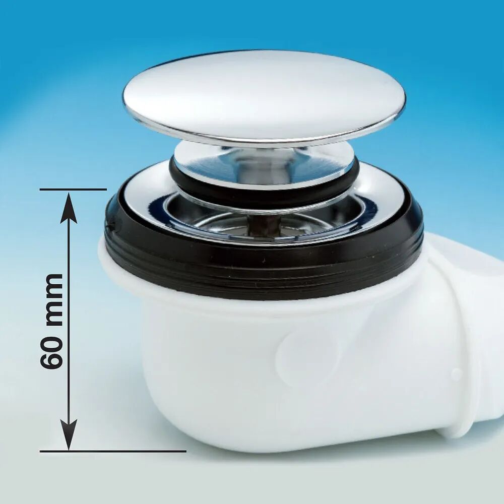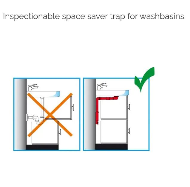 - Компактный сифон для умывальников. Конструкция сифона позволяет организовать отвод воды так, что обеспечивает экономию места внутри корпуса под раковиной