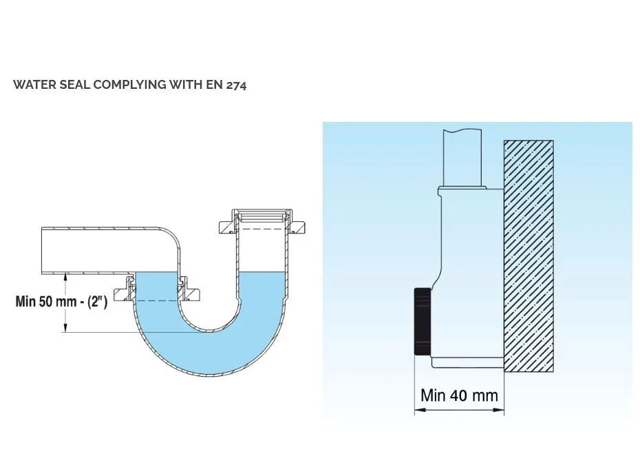 - Диаметр подключения к канализационной трубе 32-40 мм