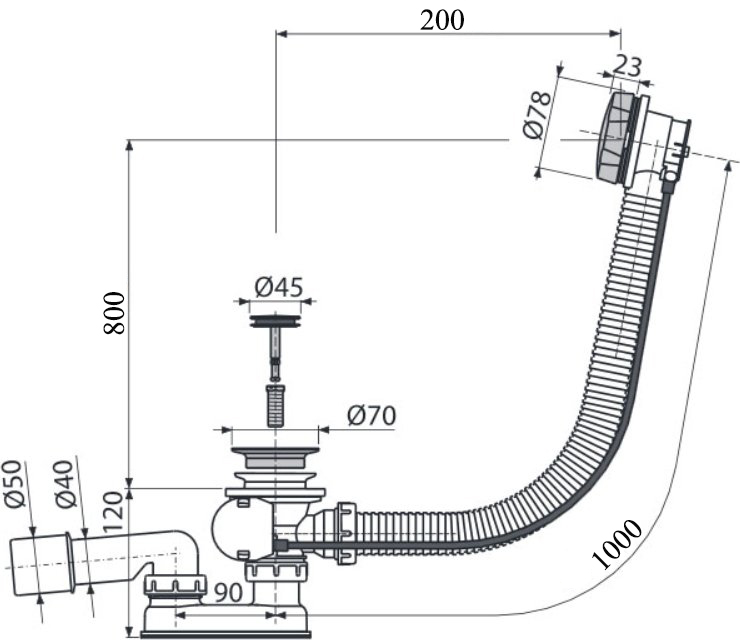 - Для слива воды из ванны в канализационный сток