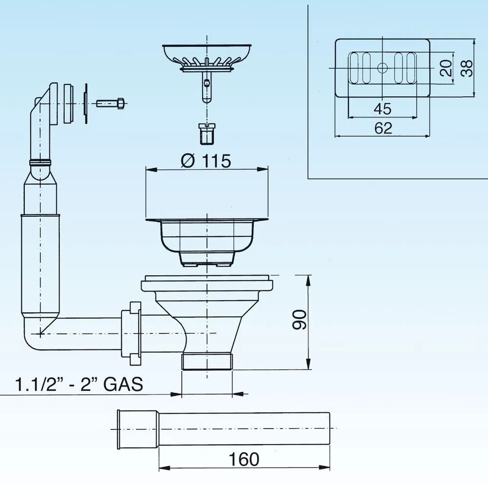 Корзиночный слив для моек из нержавеющей стали, синтетических материалов и керамики со сливным отверстием Ø 90.