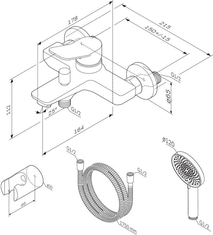 | Оснащение | душевой шланг, настенный держатель, эксцентрики, душевая лейка, аэратор |