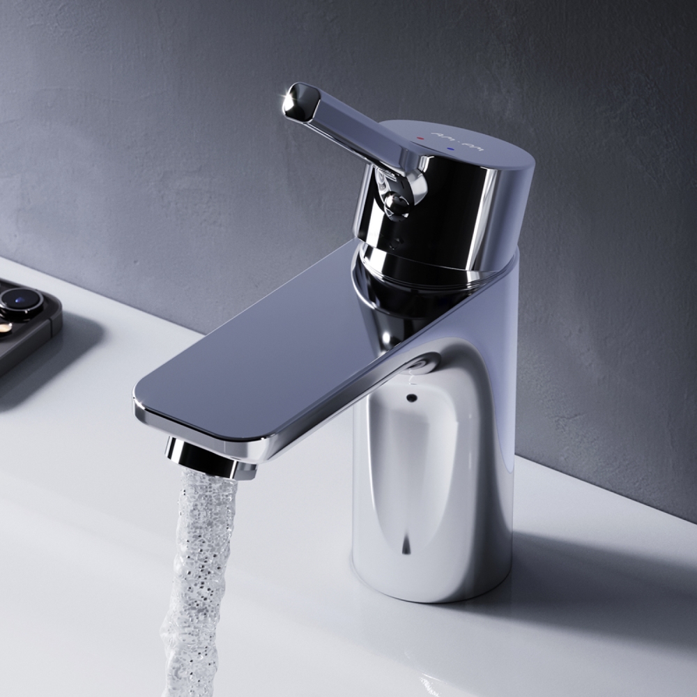 Смеситель для раковины AM.PM X-Joy S F85B02100 - настоящее дизайнерское решение для ванной комнаты. Дизайн от австрийской студии GP designpartners. Выполненный в ультрамодной стилистике с динамичными линиями, смеситель станет отличным завершающим штрихом в интерьере современной ванной комнаты.