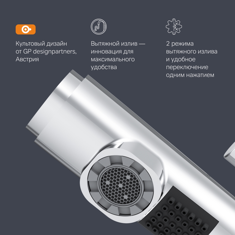 - Вытяжной излив – инновационная технология для максимального удобства и функциональности.