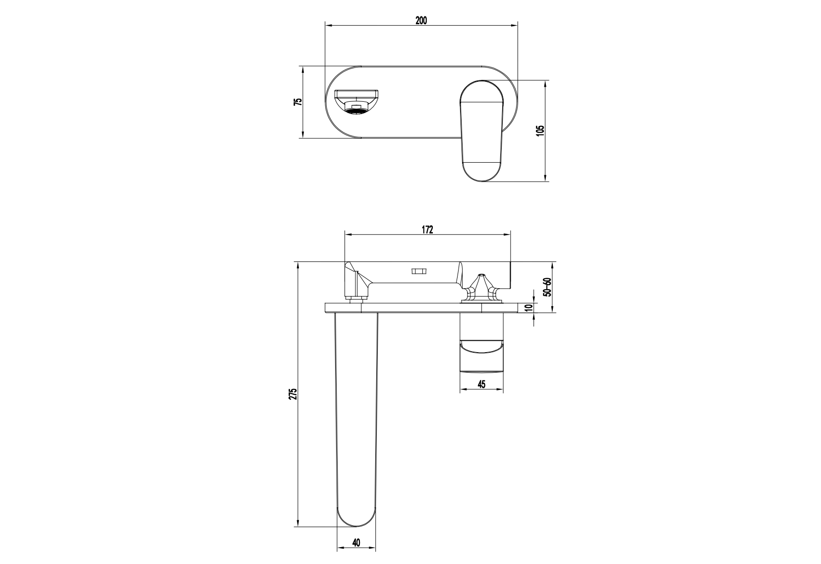 - Однорычажная система регулировки силы струи и температуры воды