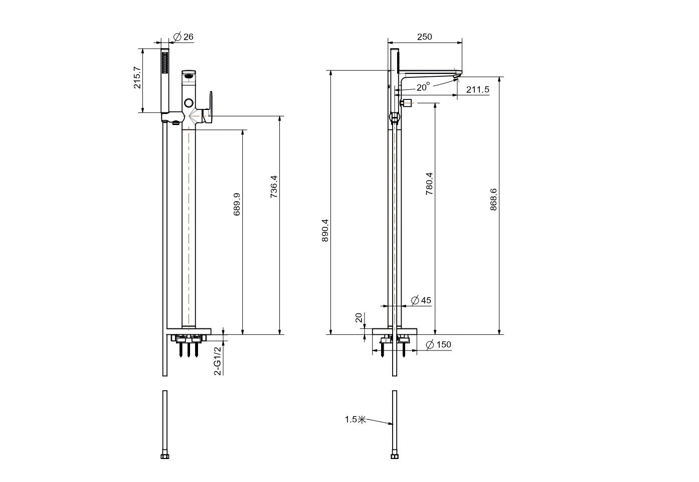 - Максимальный объем расхода воды для излива при 3 барах: 20,0 л/мин