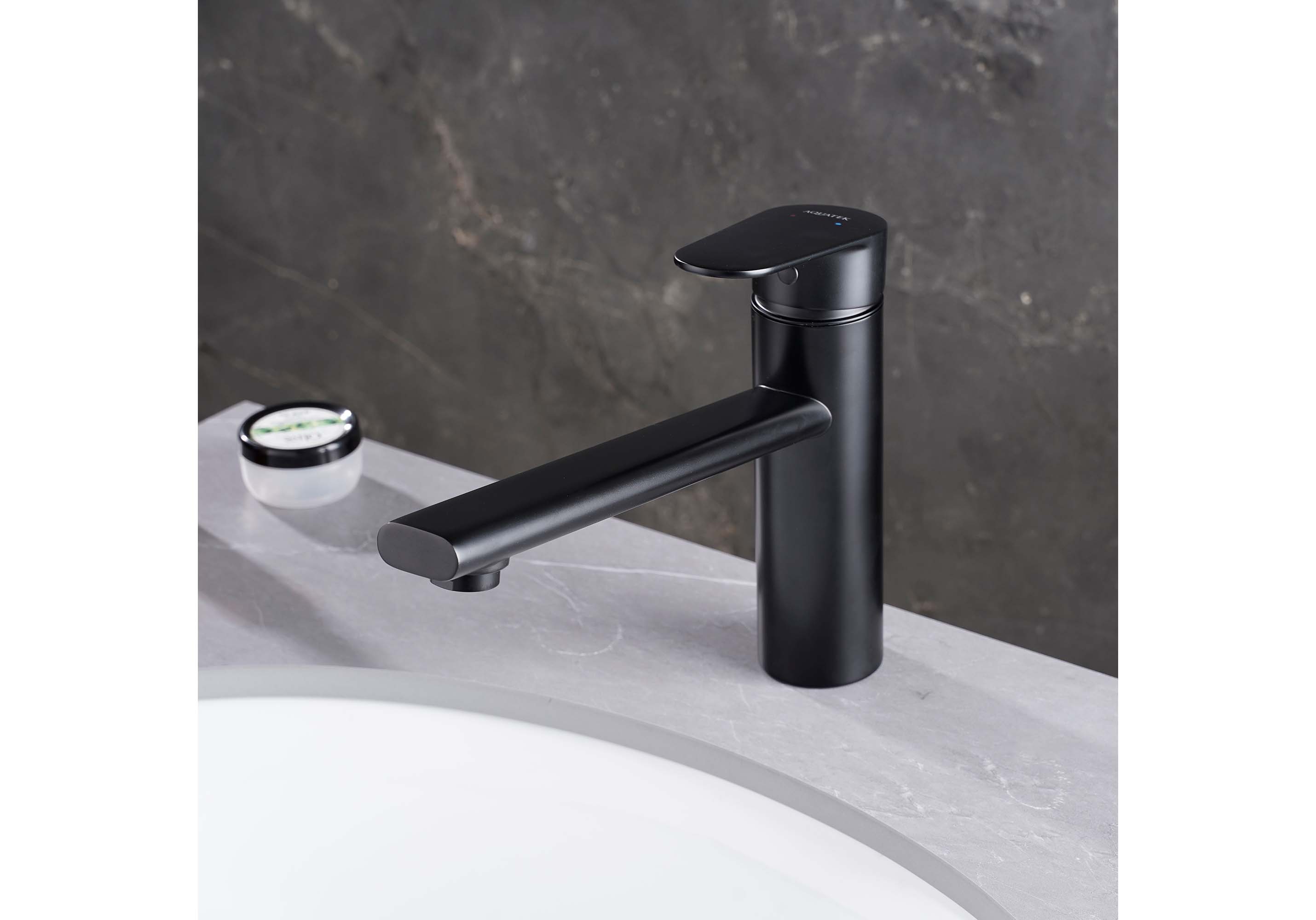 - Оснащен длинным изливом, подходит для большинства кухонных моек