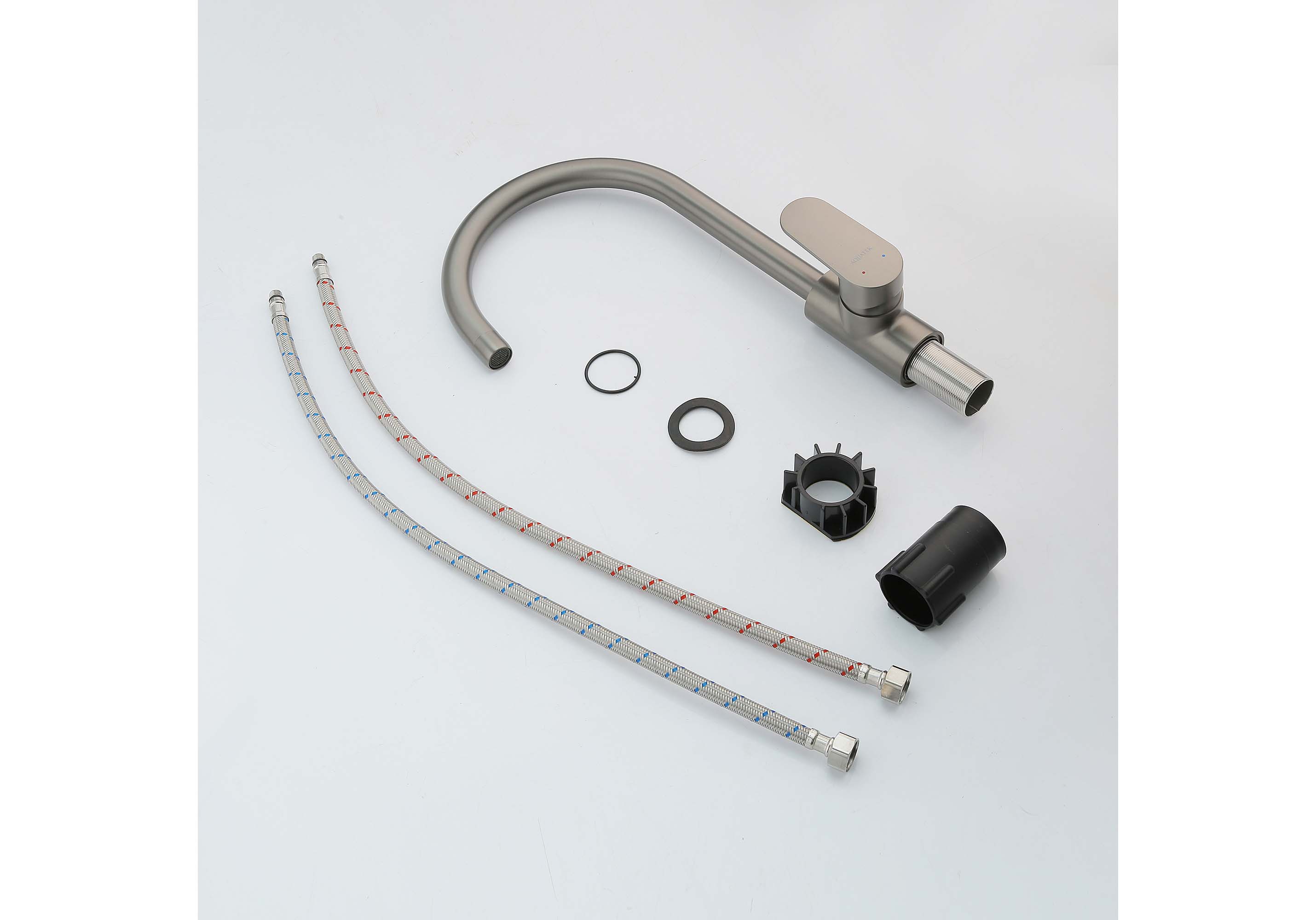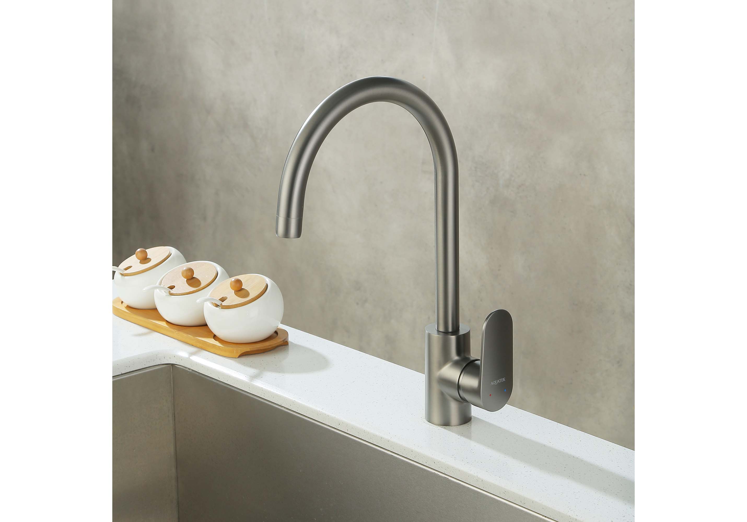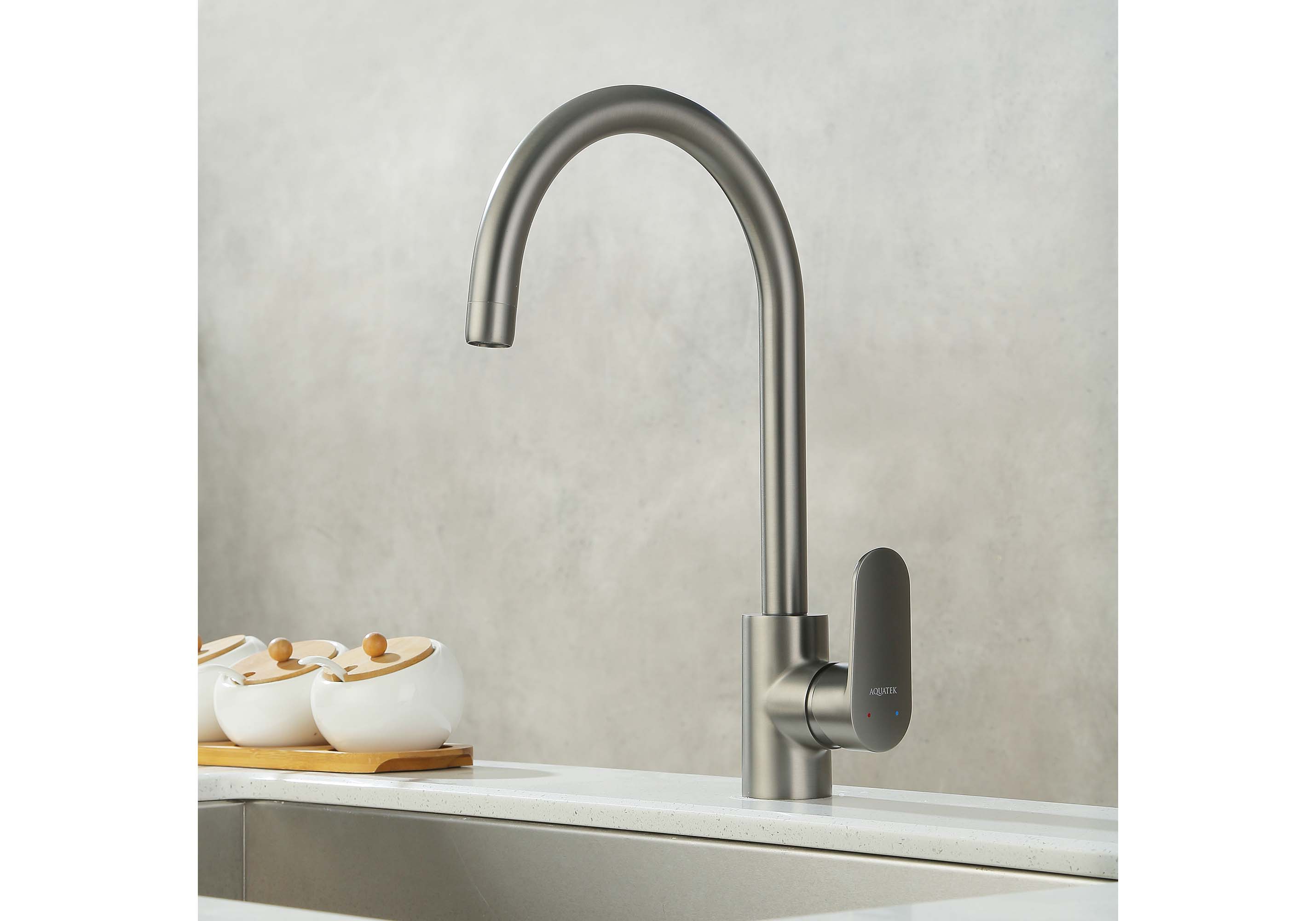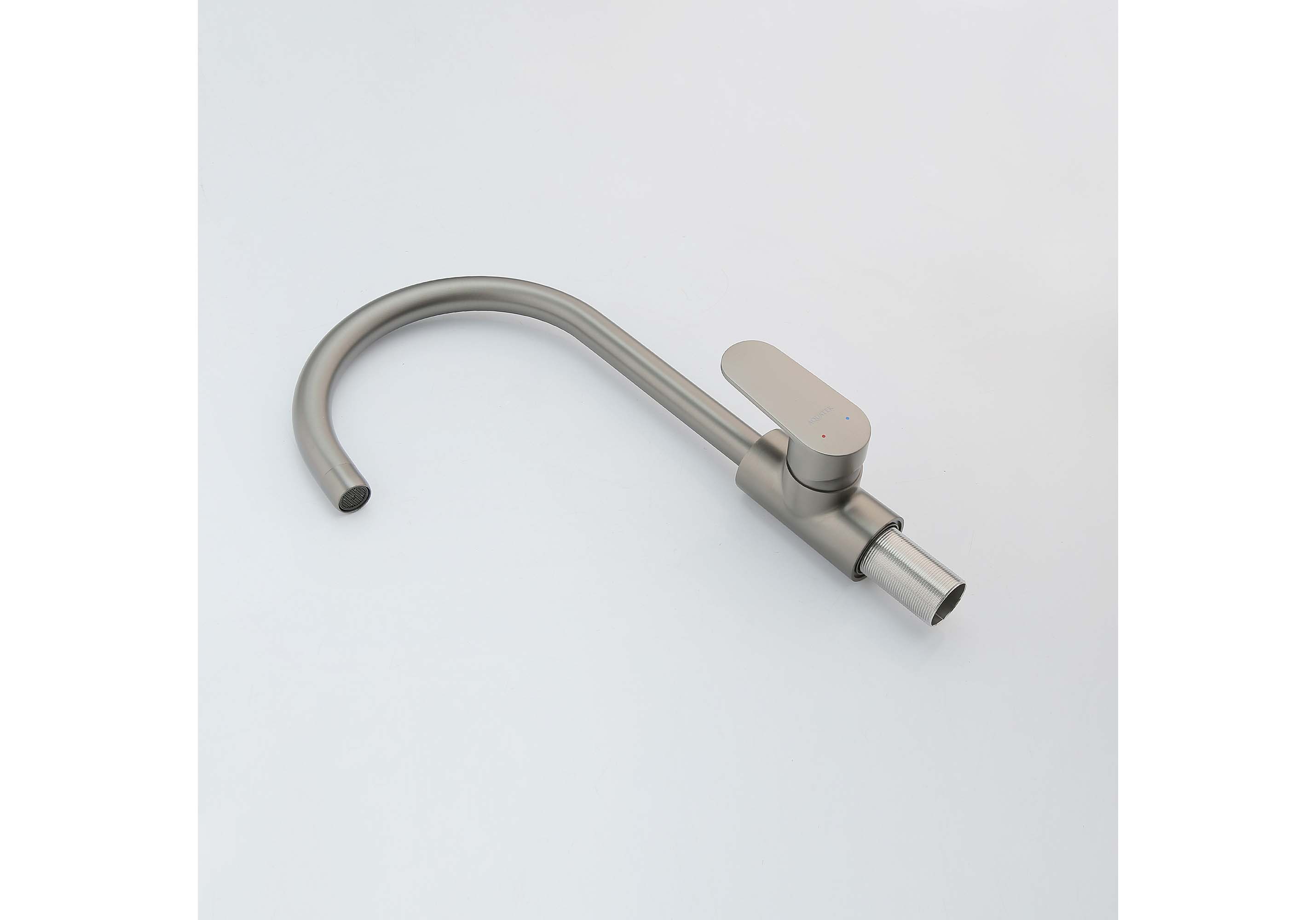 - Оснащен высоким изливом, подходит для большинства кухонных моек
