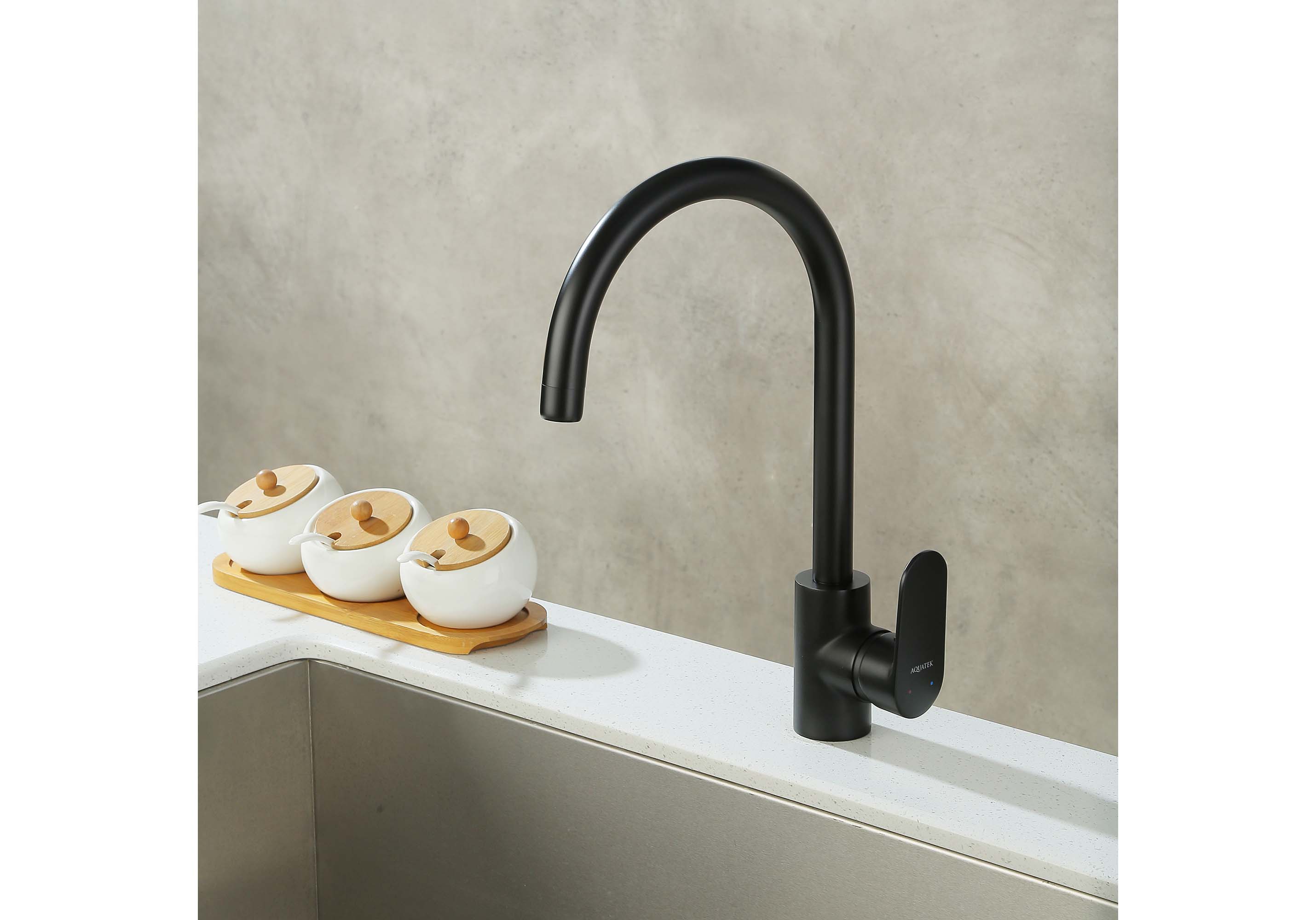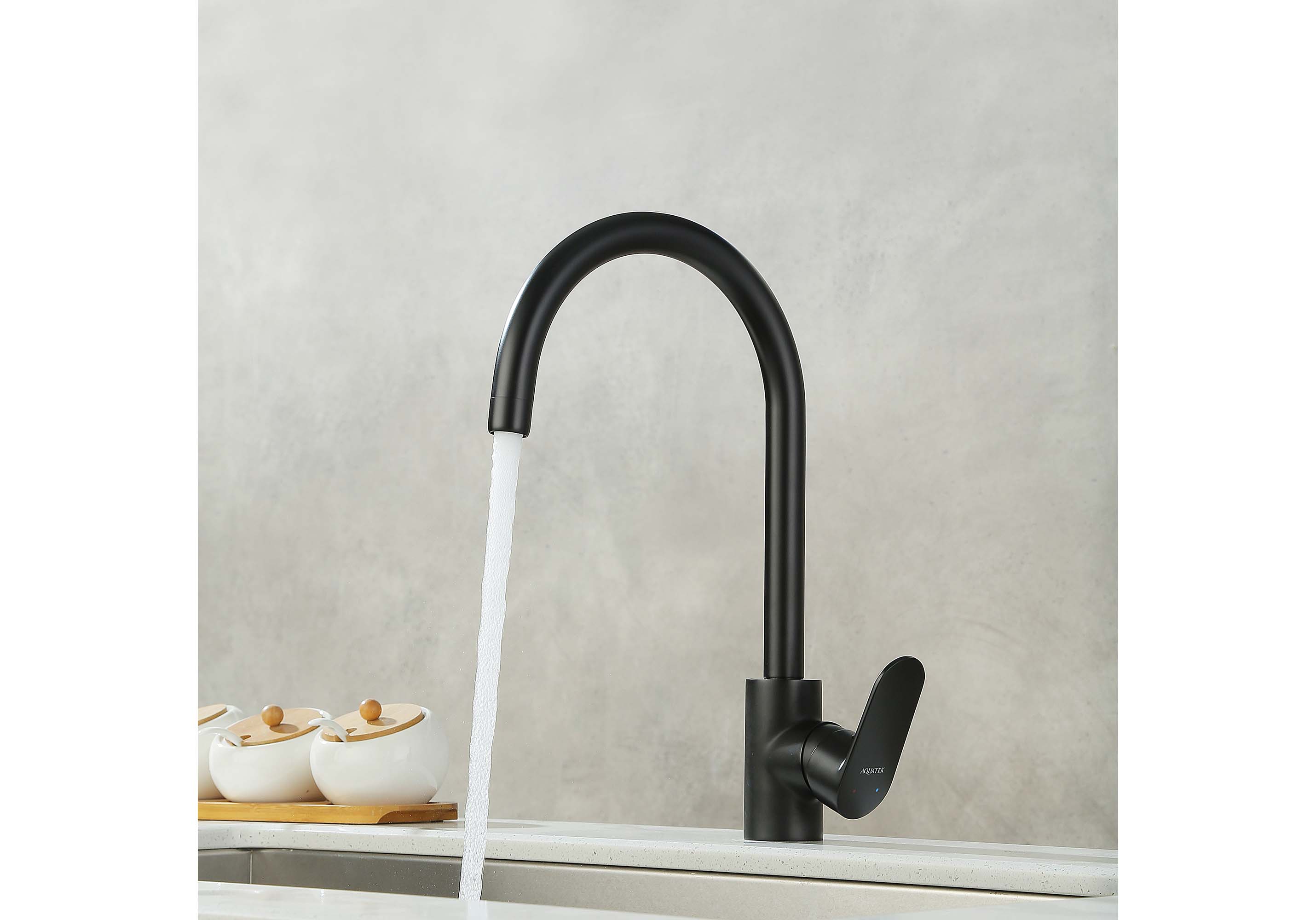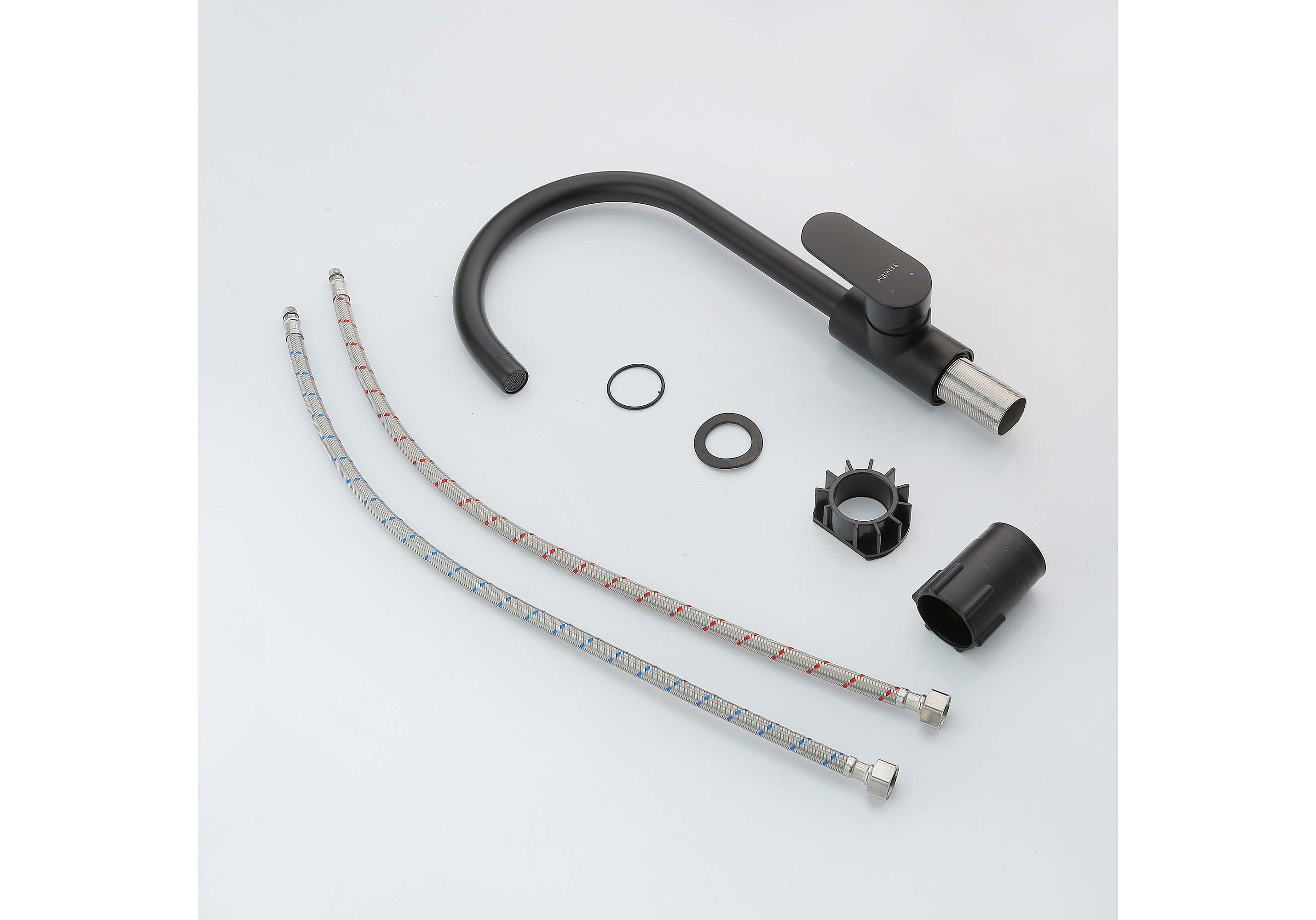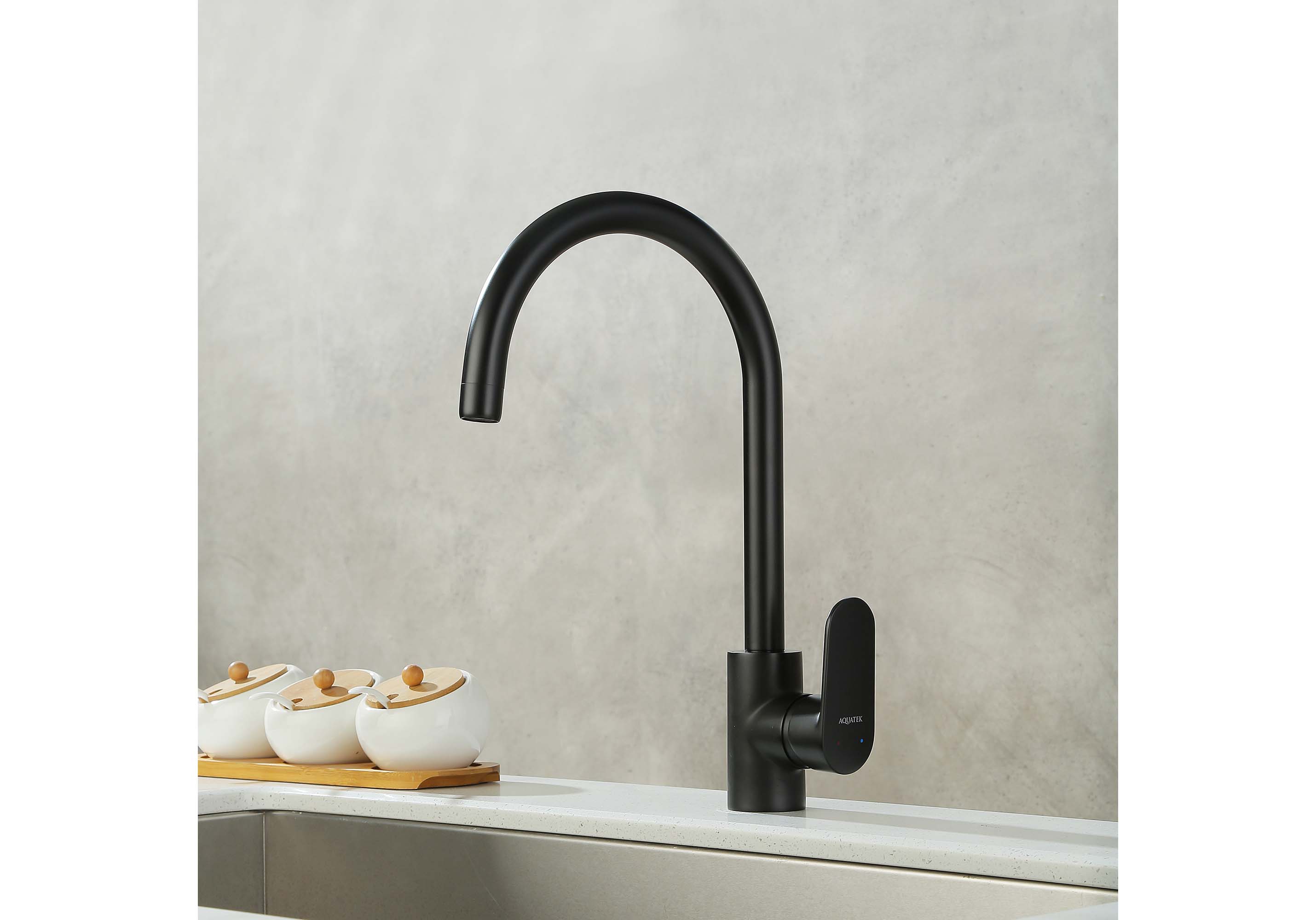 - Оснащен высоким изливом, подходит для большинства кухонных моек