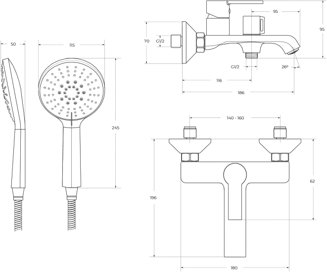 | Оснащение | душевой шланг, настенный держатель, эксцентрики, переключатель потоков, душевая лейка, аэратор |