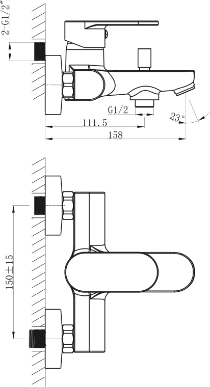 Настенный смеситель для ванны BelBagno Loyd LOY-VASM-CRM однорычажный, с аэратором, монтируемый в два отверстия.