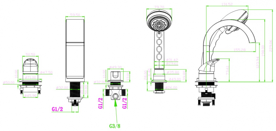 | Оснащение | душевой шланг, крепления, переключатель потоков, гибкая подводка, душевая лейка |