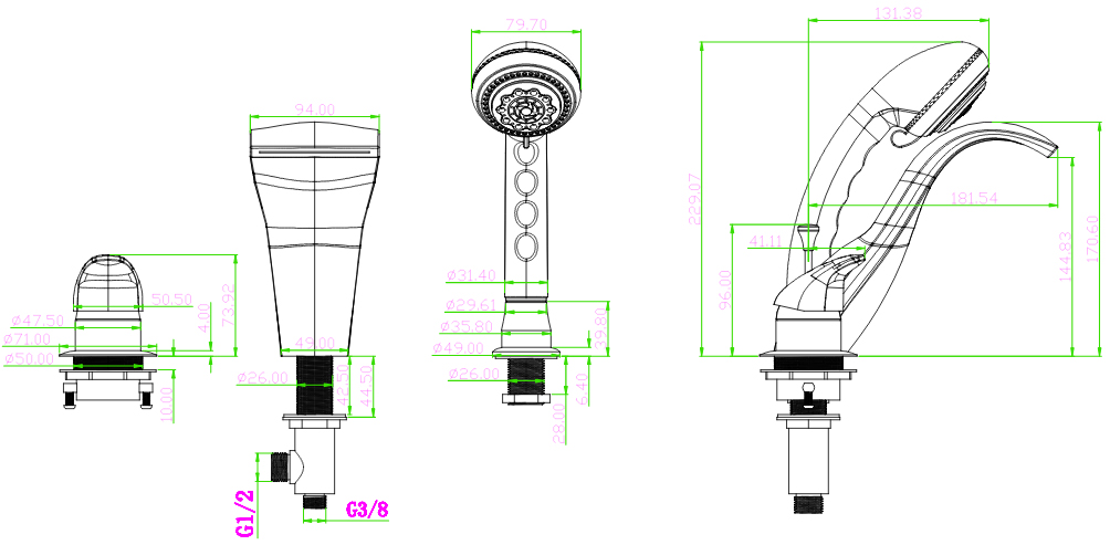 | Оснащение | душевой шланг, крепления, переключатель потоков, гибкая подводка, душевая лейка |