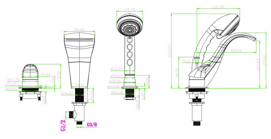 | Оснащение | душевой шланг, крепления, переключатель потоков, гибкая подводка, душевая лейка |