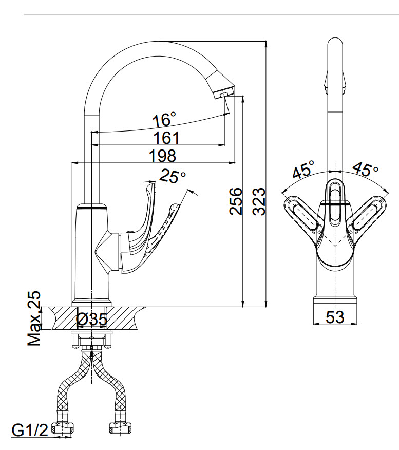 | Стандарт подводки | 1/2" |