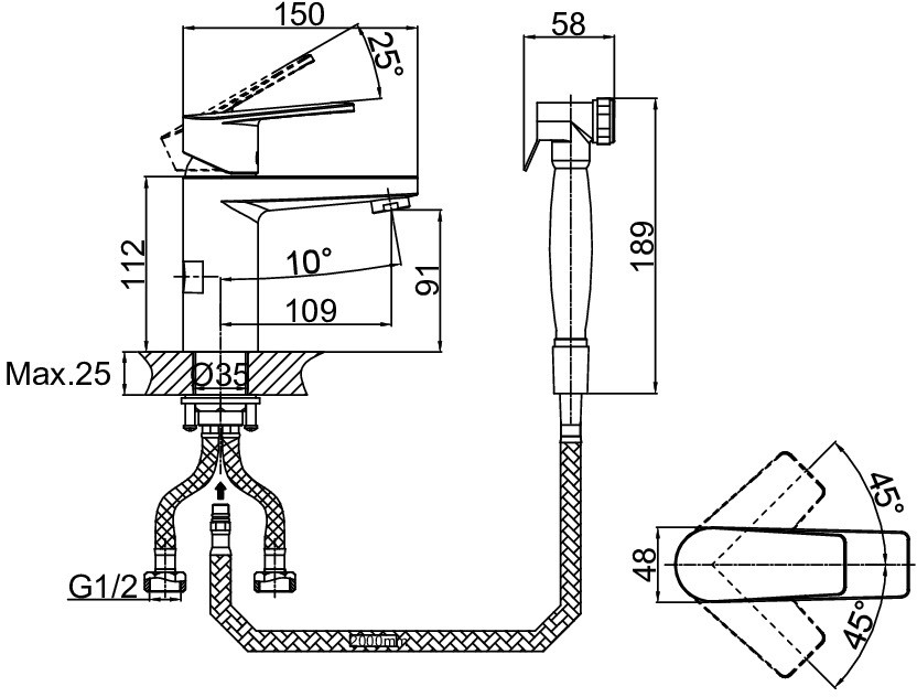 | Оснащение | душевой шланг, настенный держатель, крепления, гибкая подводка, душевая лейка, аэратор |