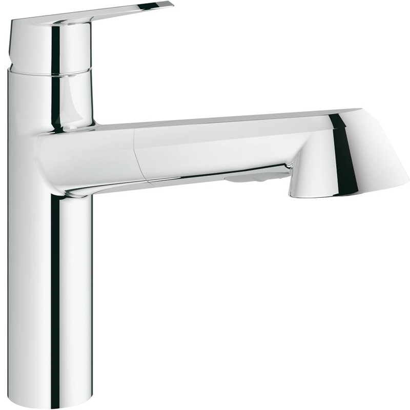 Однорычажный смеситель с поворотным выдвижным изливом и аэратором, монтируемый в одно отверстие. Идеально подходит для любых интерьеров благодаря привлекательной конструкции корпуса со сглаженными гранями и удобному управлению.