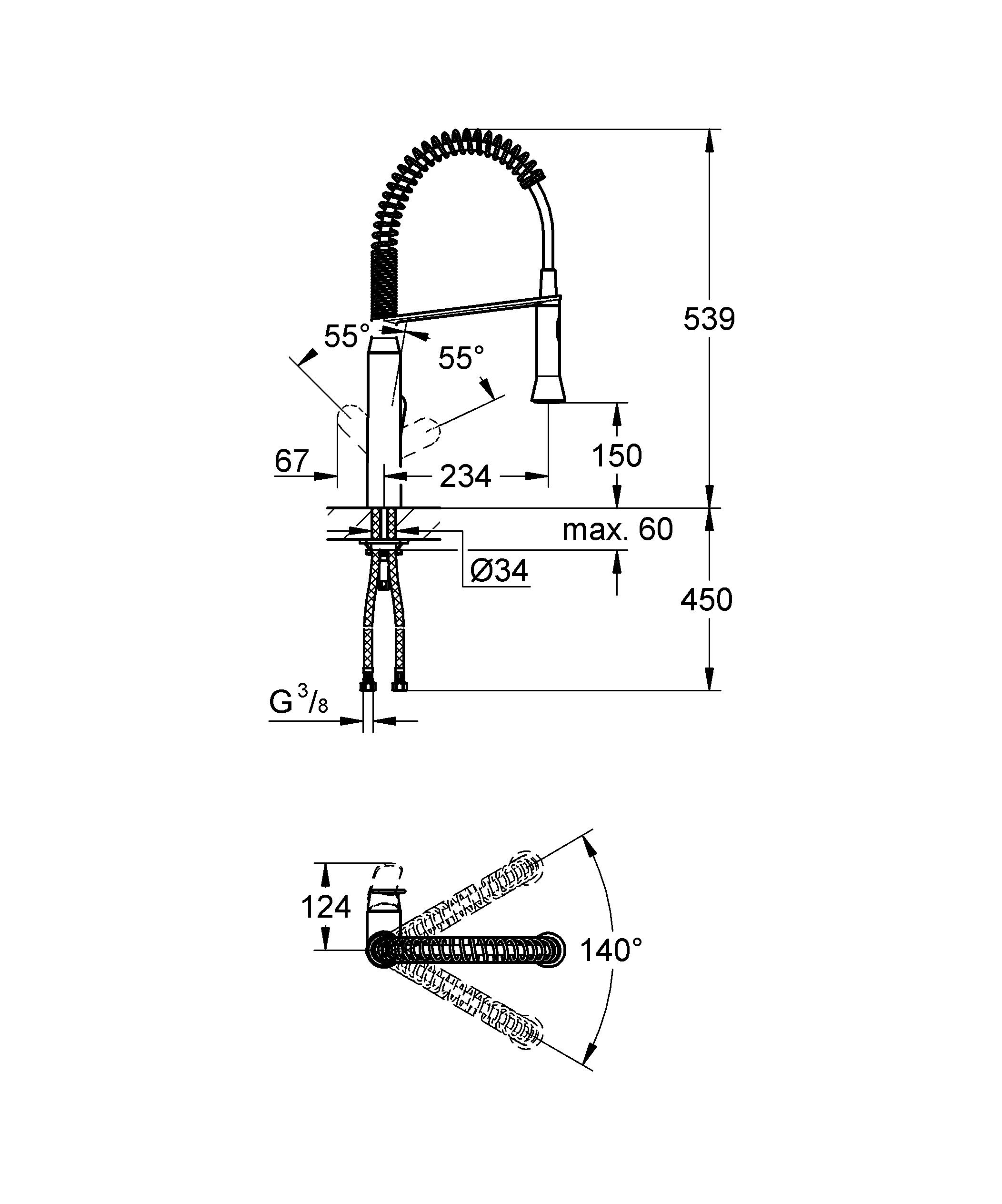 Однорычажный смеситель для кухни Grohe K7 31379000 с выдвижным изливом.