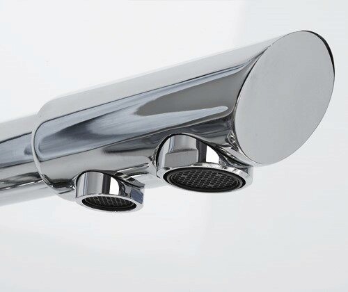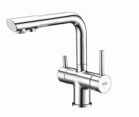 Двухрычажный смеситель с поворотным изливом, аэратором и подключением к фильтру с питьевой водой. Имеет долгий срок эксплуатации за счет качественных деталей, неприхотлив в уходе. Дополнит любую ванную комнату своей функциональностью и стильной формой конструкции.