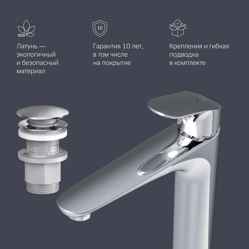AM MP Like F8092200 - высокий смеситель для раковины с интересным подходом к дизайну. Нестандартная форма и внешний вид относят его к стилю хай-тек. Уникальный кармический картридж SoftMotion 35 мм обладает высоким запасом прочности: он выдерживает давление до 35 атмосфер и перегрев до 95 градусов. Функция Rub&Clean позволяет эффективно очищать аэратор от накипи и извести.