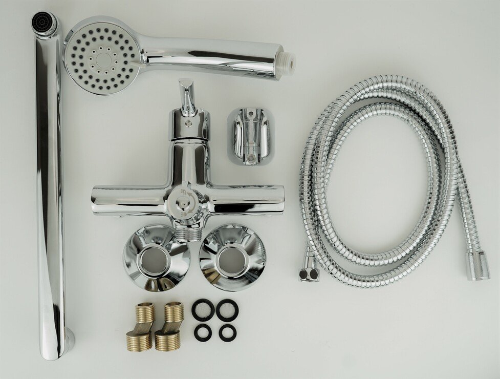| Оснащение | душевой шланг, настенный держатель, эксцентрики, переключатель потоков, душевая лейка, аэратор |