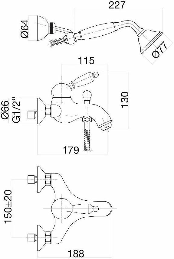 | Оснащение | душевой шланг, настенный держатель, эксцентрики, переключатель потоков, душевая лейка, аэратор |