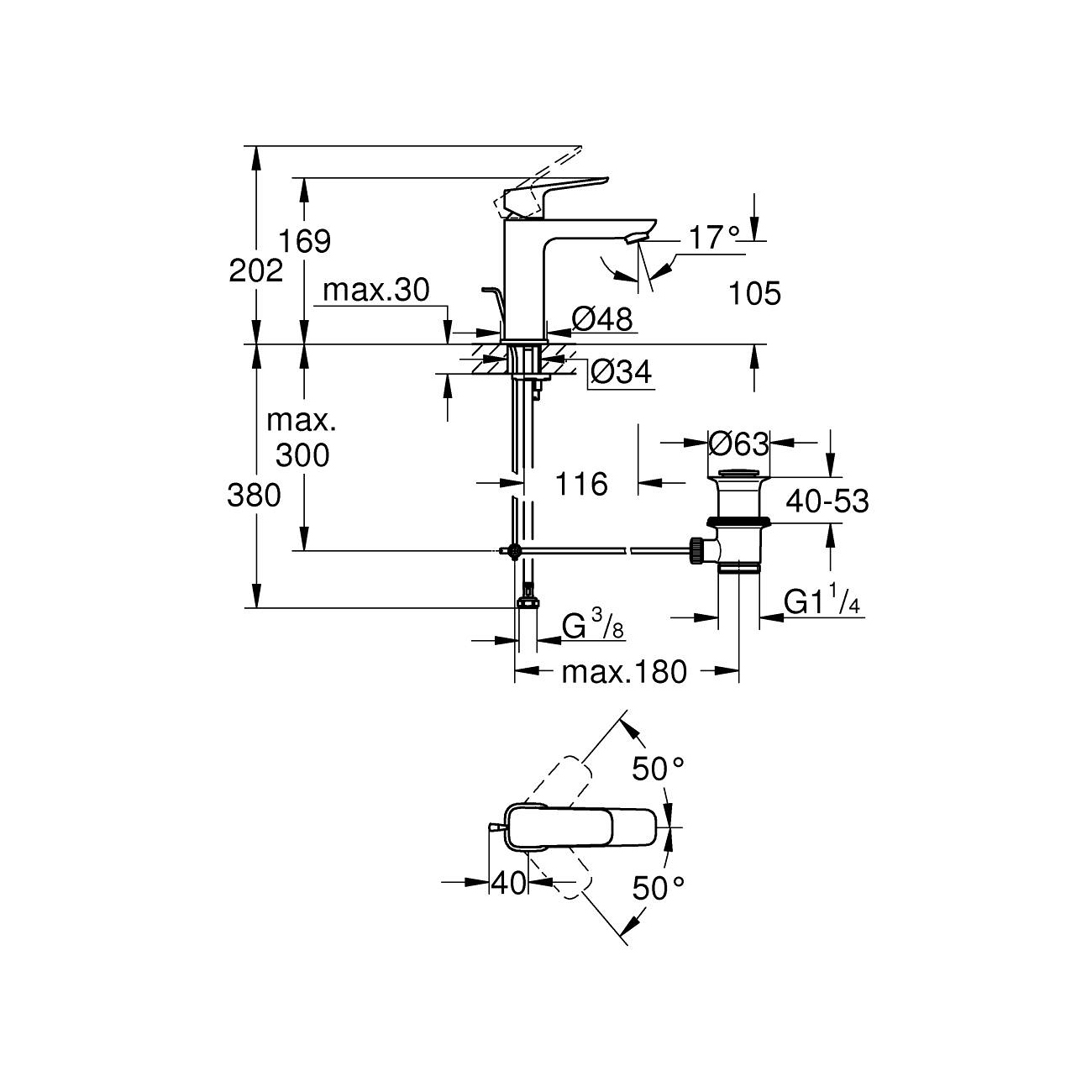 - Для еще большей экологичности технология GROHE Water Saving technology ограничивает расход воды до эффективных 5 л/мин (при давлении 3 бар), обеспечивая при этом мощную струю воды.