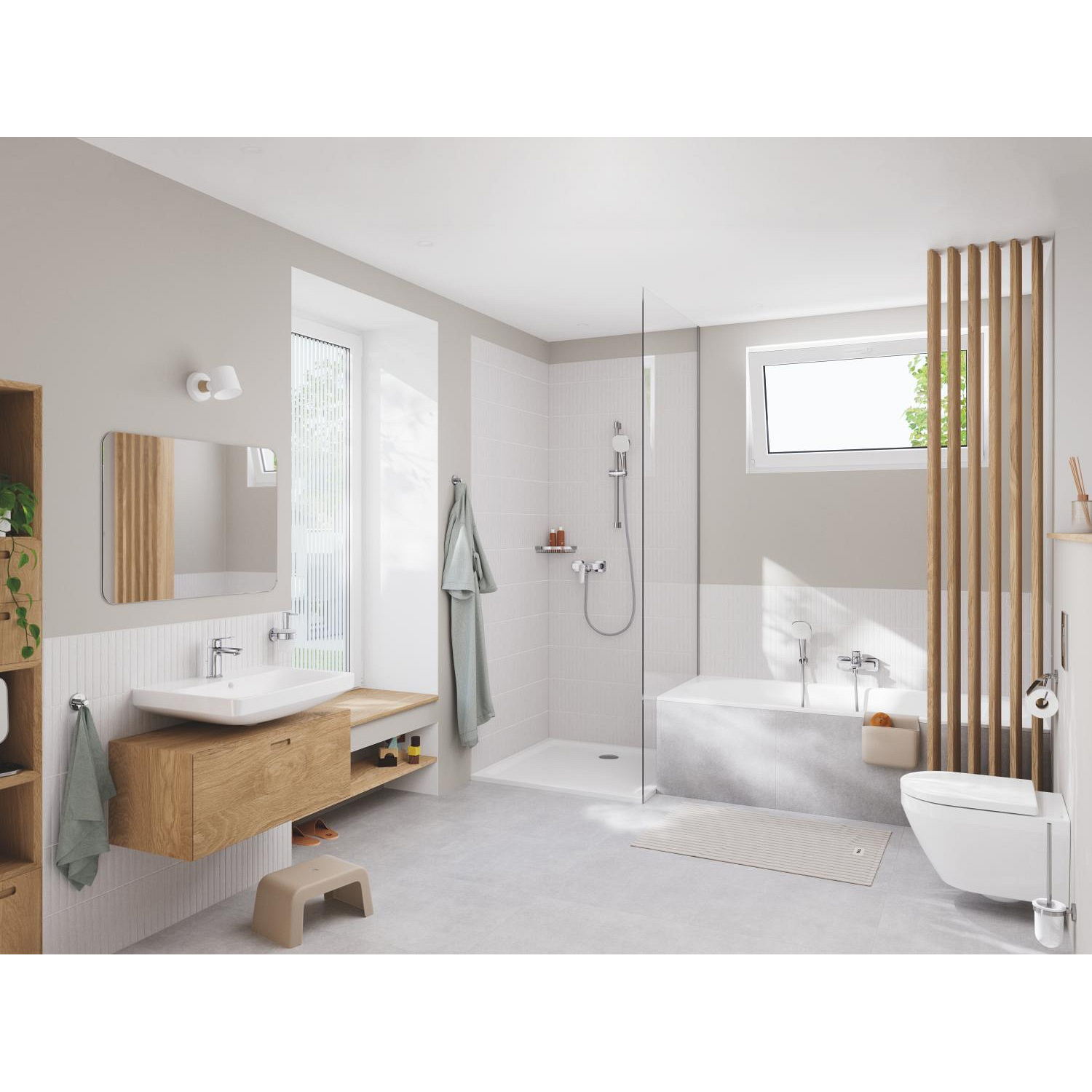 Благодаря износостойкому и легко моющемуся покрытию GROHE Long-Life finish, этот смеситель для ванной комнаты из ослепительного хрома будет выглядеть безупречно долгие годы.