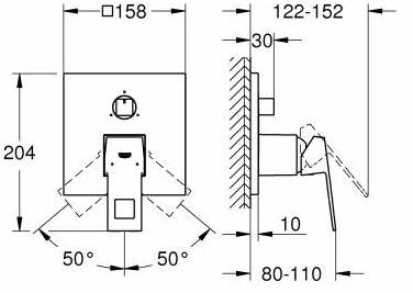 - С настенными розетками Grohe QuickFix (скрытые эксцентрики, уплотнение, скрытый монтаж)