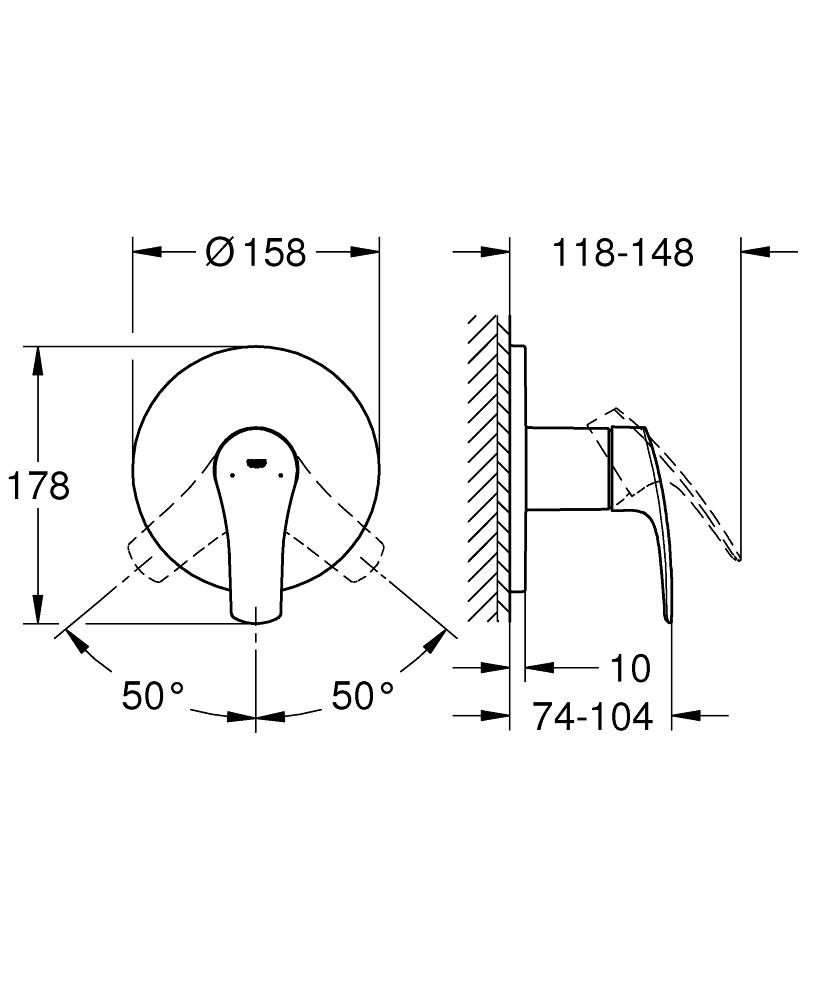 - Настенная панель с GROHE FastFixation (скрытоеуплотнение штока, скрытое крепление)