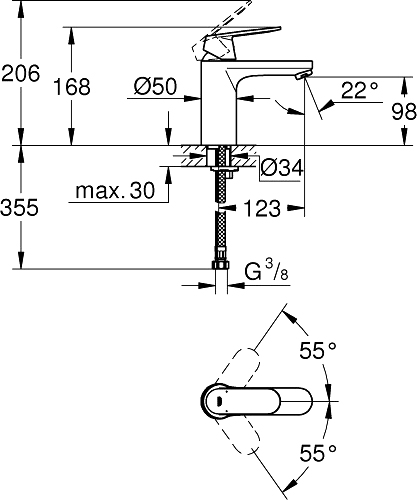 | Вращение излива | фиксированный |