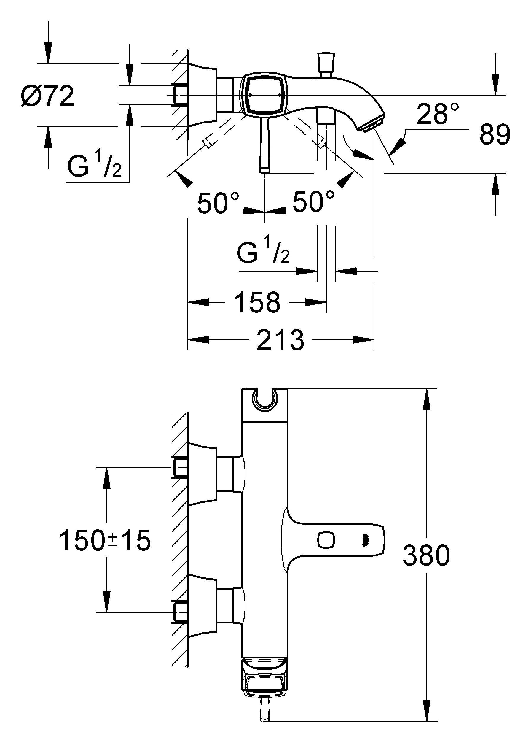 - Встроенный обратный клапан в душевом отводе 1/2"