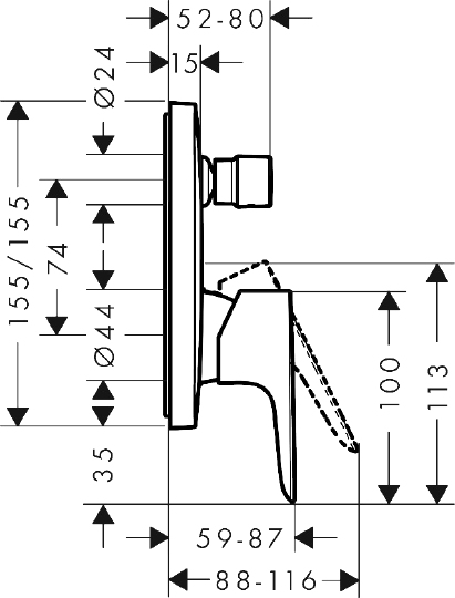 В комплект поставки входит: однорычажный смеситель (внешняя часть).
