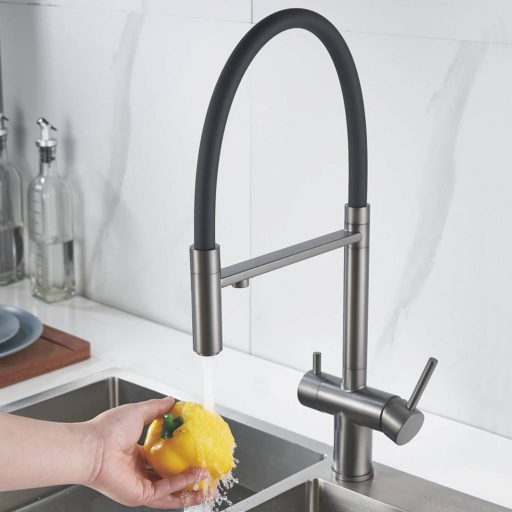 Одним из главных преимуществ смесителя Maretti является возможность подключения фильтра для воды. Теперь у вас всегда будет доступ к чистой и свежей воде прямо из вашего смесителя. Дополнительный излив служит не только для подачи фильтрованной воды, но и как держатель для гибкого излива, когда тот не используется, что делает использование смесителя ещё удобнее.