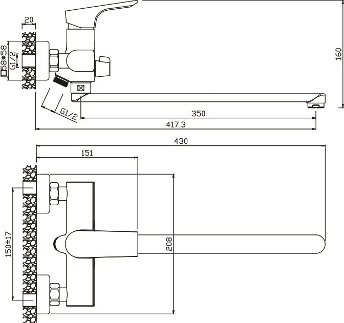 | Оснащение | душевой шланг, настенный держатель, эксцентрики, душевая лейка, аэратор |