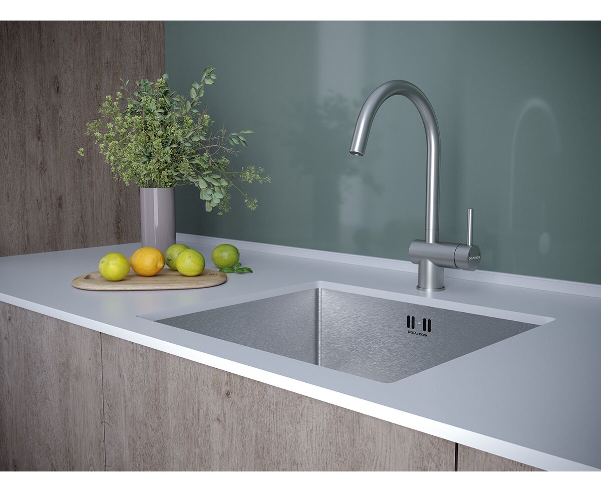 Смеситель с подключением к фильтру для воды изготовлен из нержавеющей стали AISI 304. Нержавеющая сталь AISI 304 легирована никелем, марганцем, медью и хромом, что обеспечивает ей повышенную прочность и устойчивость в коррозионных средах, такая сталь подвержена деформациям.