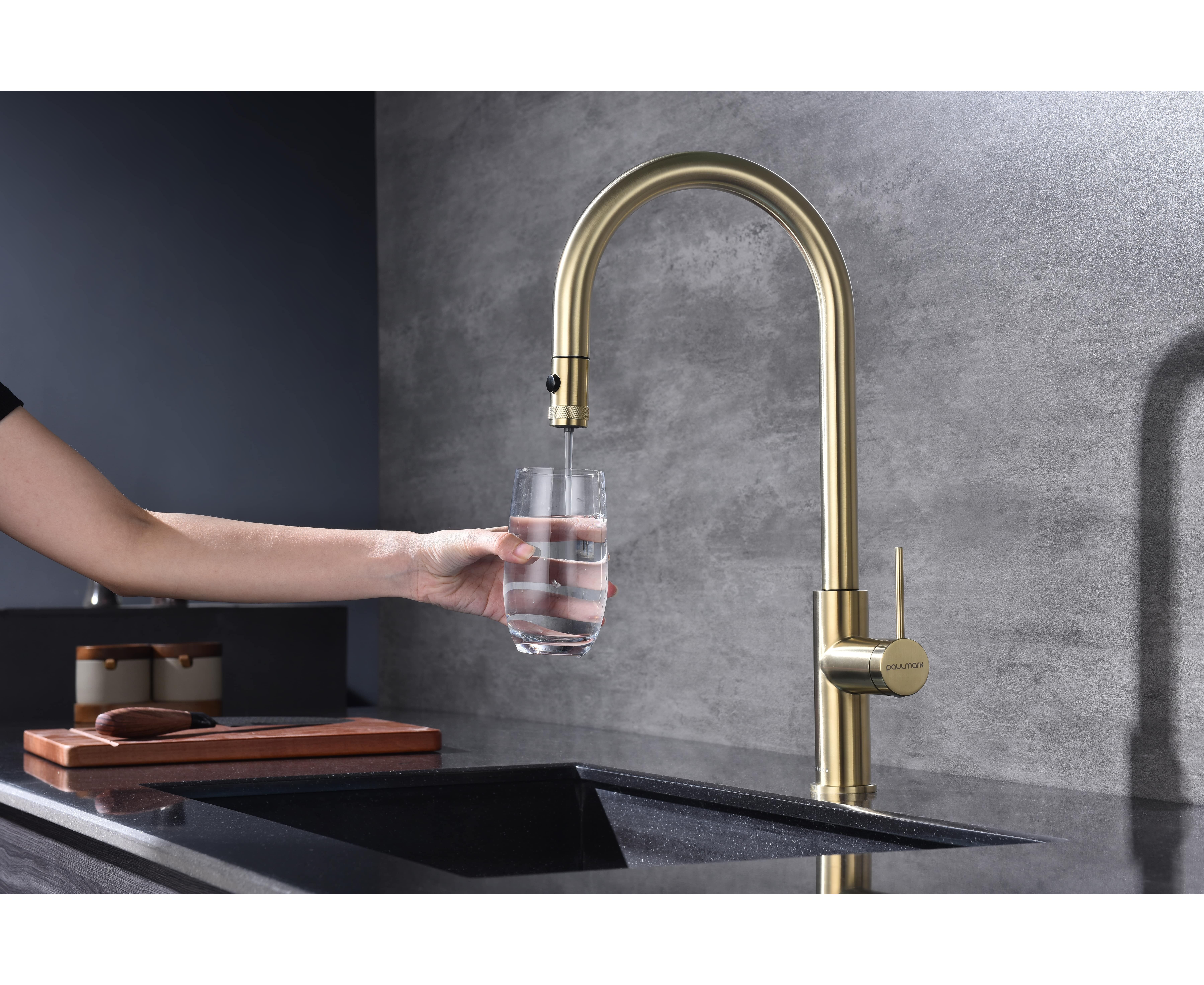 Смеситель в современном стиле GALANT с функцией подключения фильтра питьевой воды и выдвижным изливом. Подача очищенной воды включается кнопкой на конце излива. Излив выдвигается на расстояние до 60 см, что позволяет наполнять питьевой водой емкости рядом с мойкой. Кроме того, выдвижной излив облегчает уход за мойкой, позволяя ополоснуть каждый ее уголок.