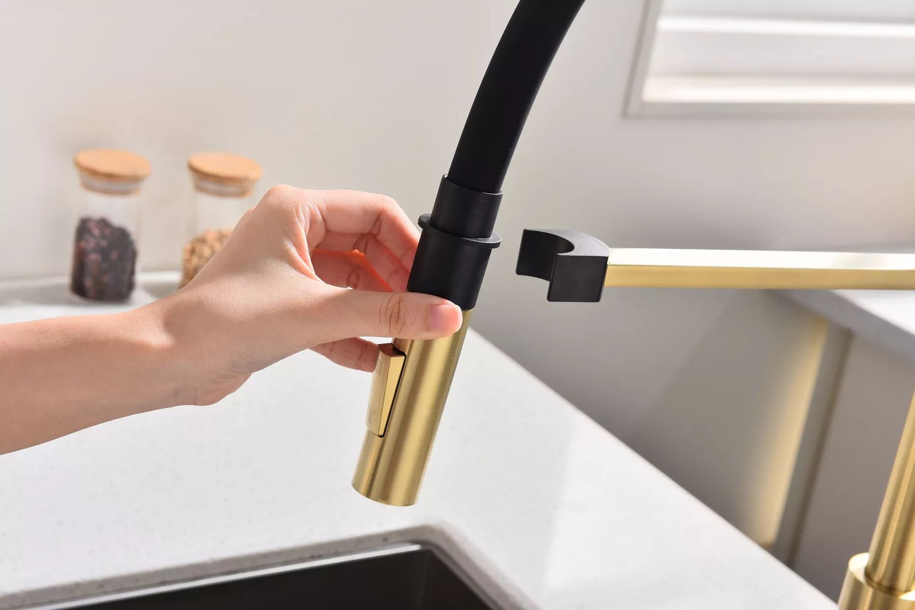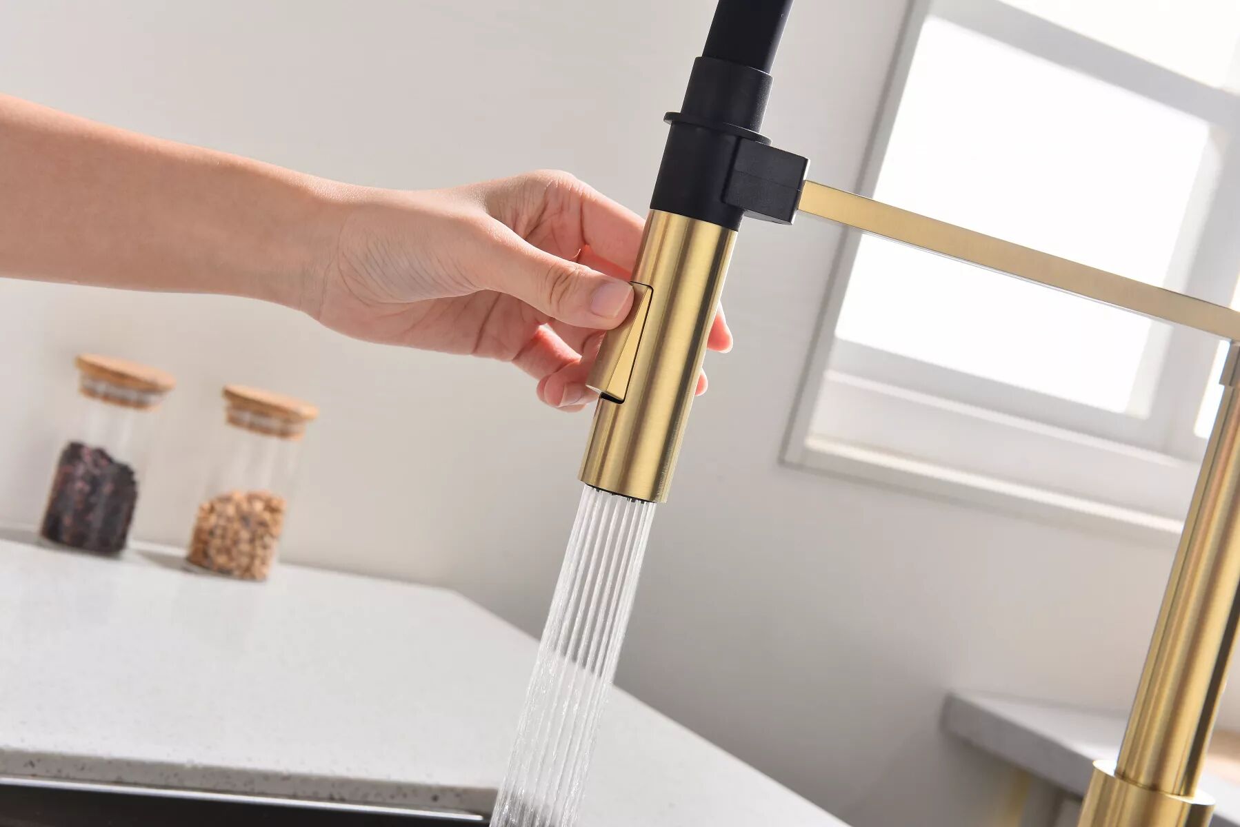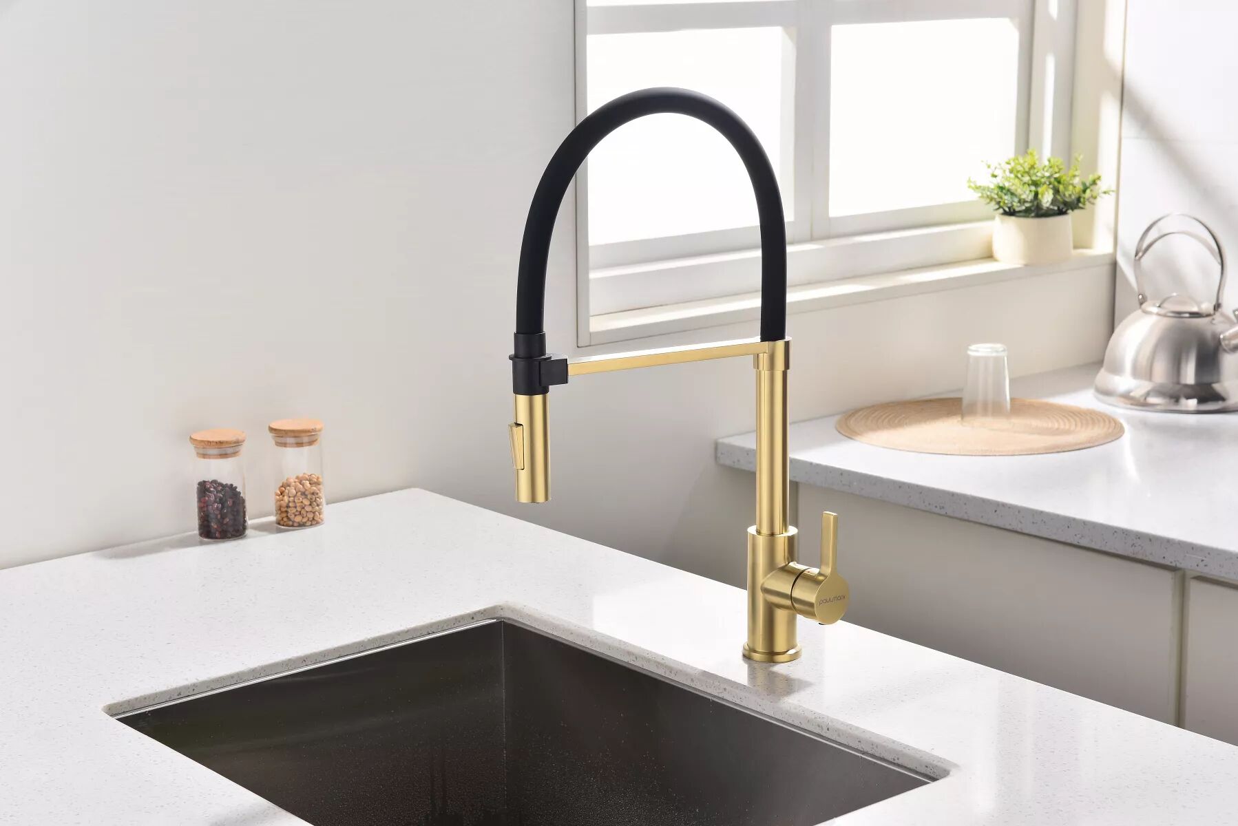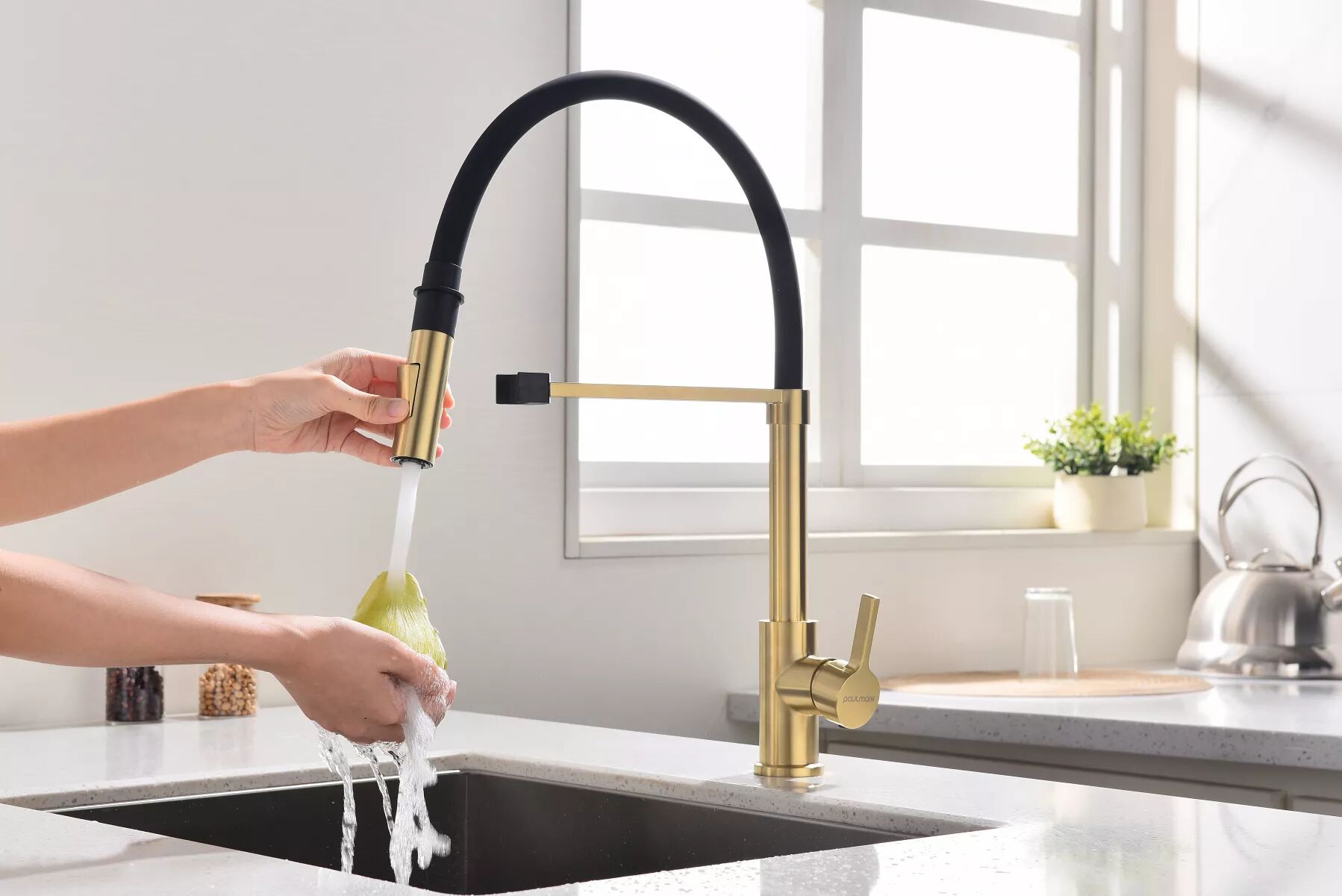 Смеситель в современном стиле GALANT с функцией подключения фильтра питьевой воды и выдвижным изливом. Подача очищенной воды включается кнопкой на конце излива. Излив выдвигается на расстояние до 60 см, что позволяет наполнять питьевой водой емкости рядом с мойкой. Кроме того, выдвижной излив облегчает уход за мойкой, позволяя ополоснуть каждый ее уголок.