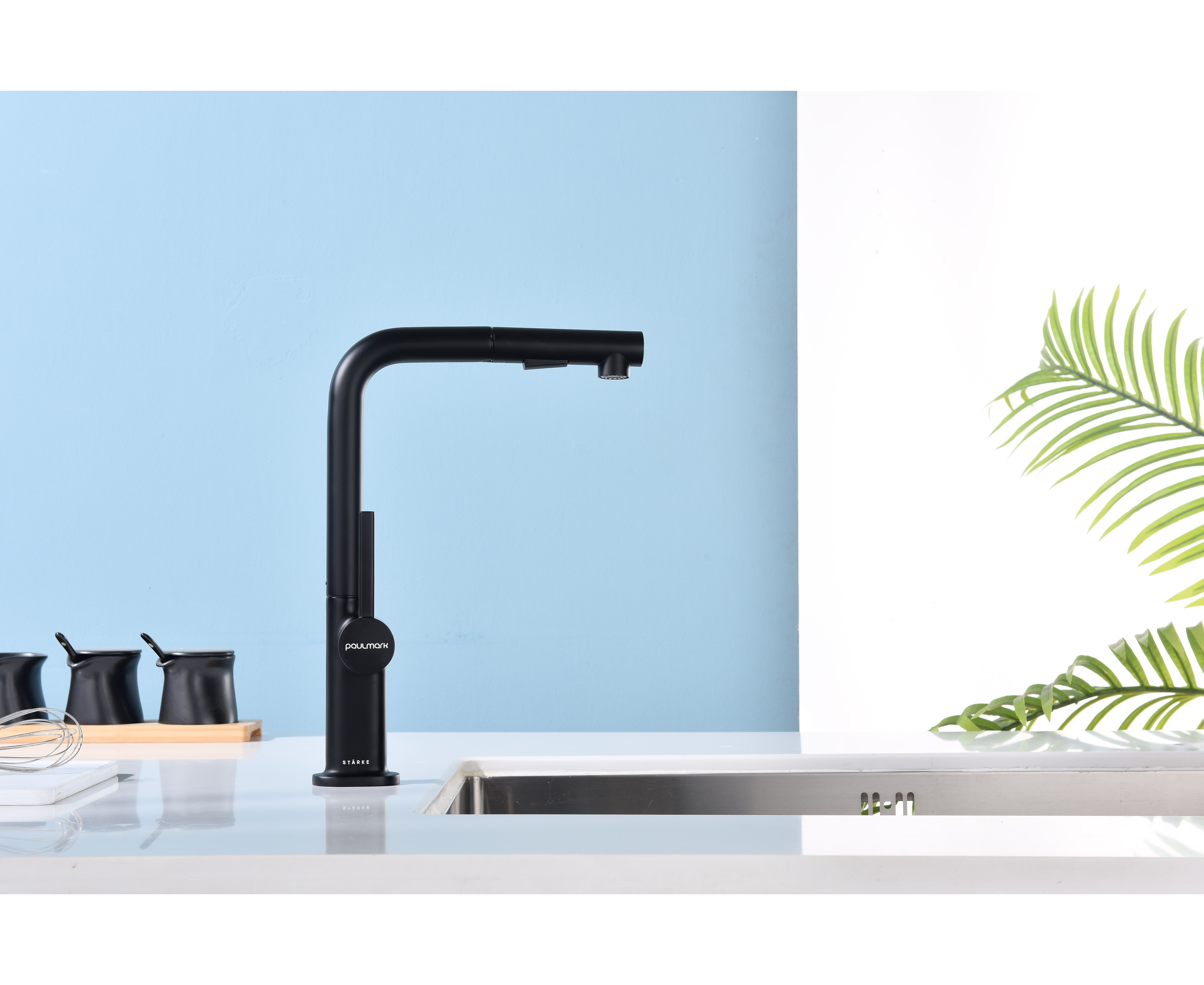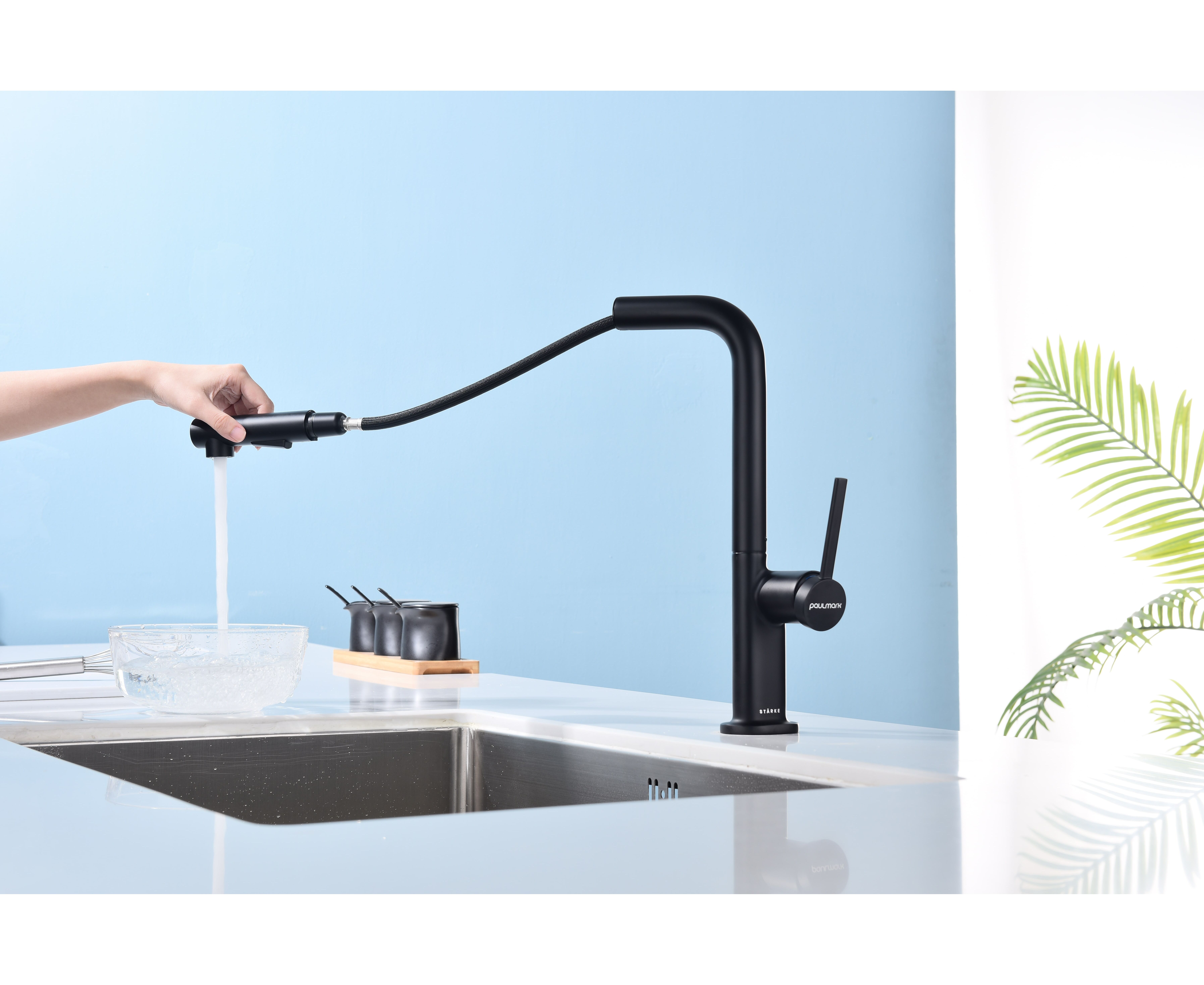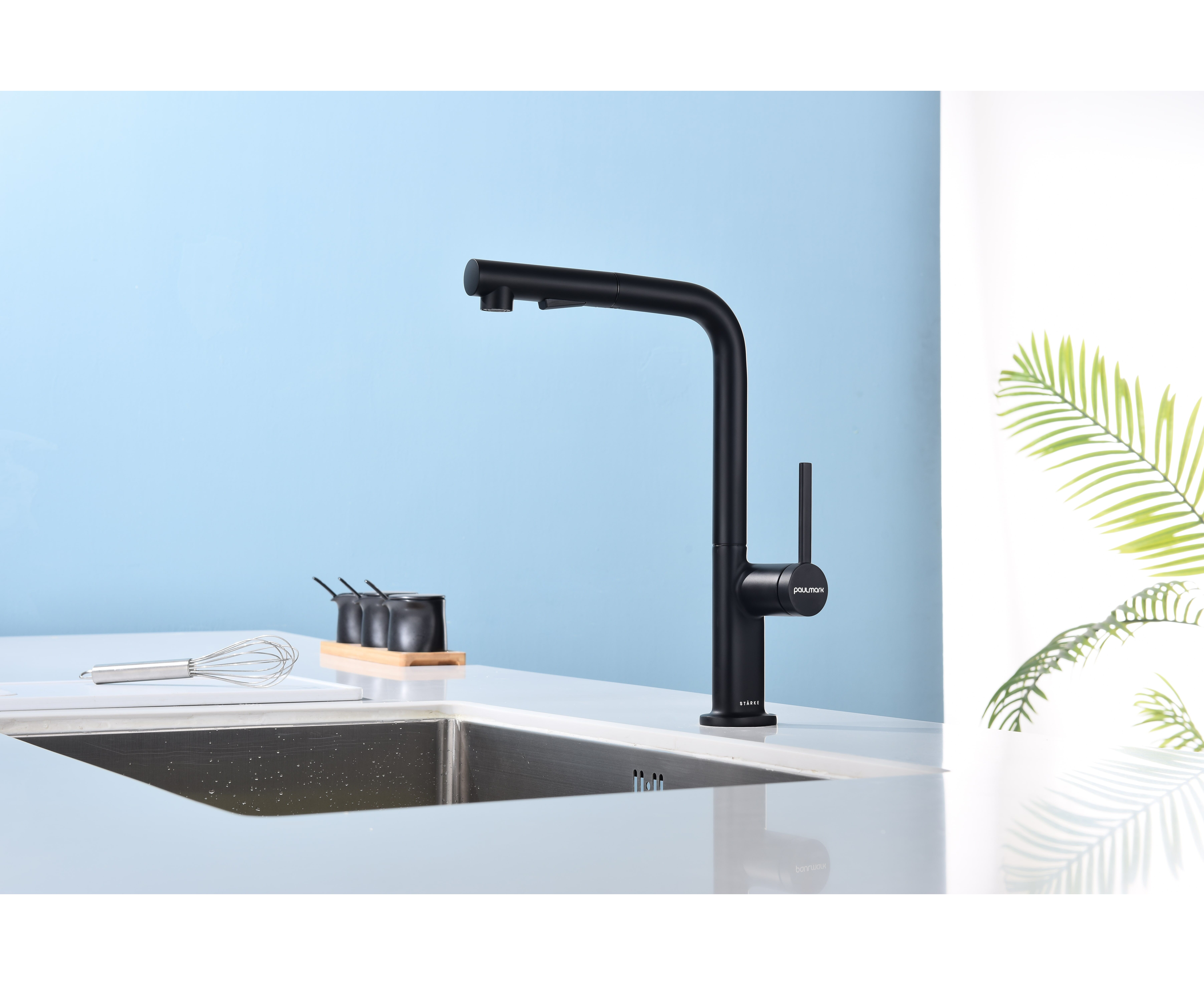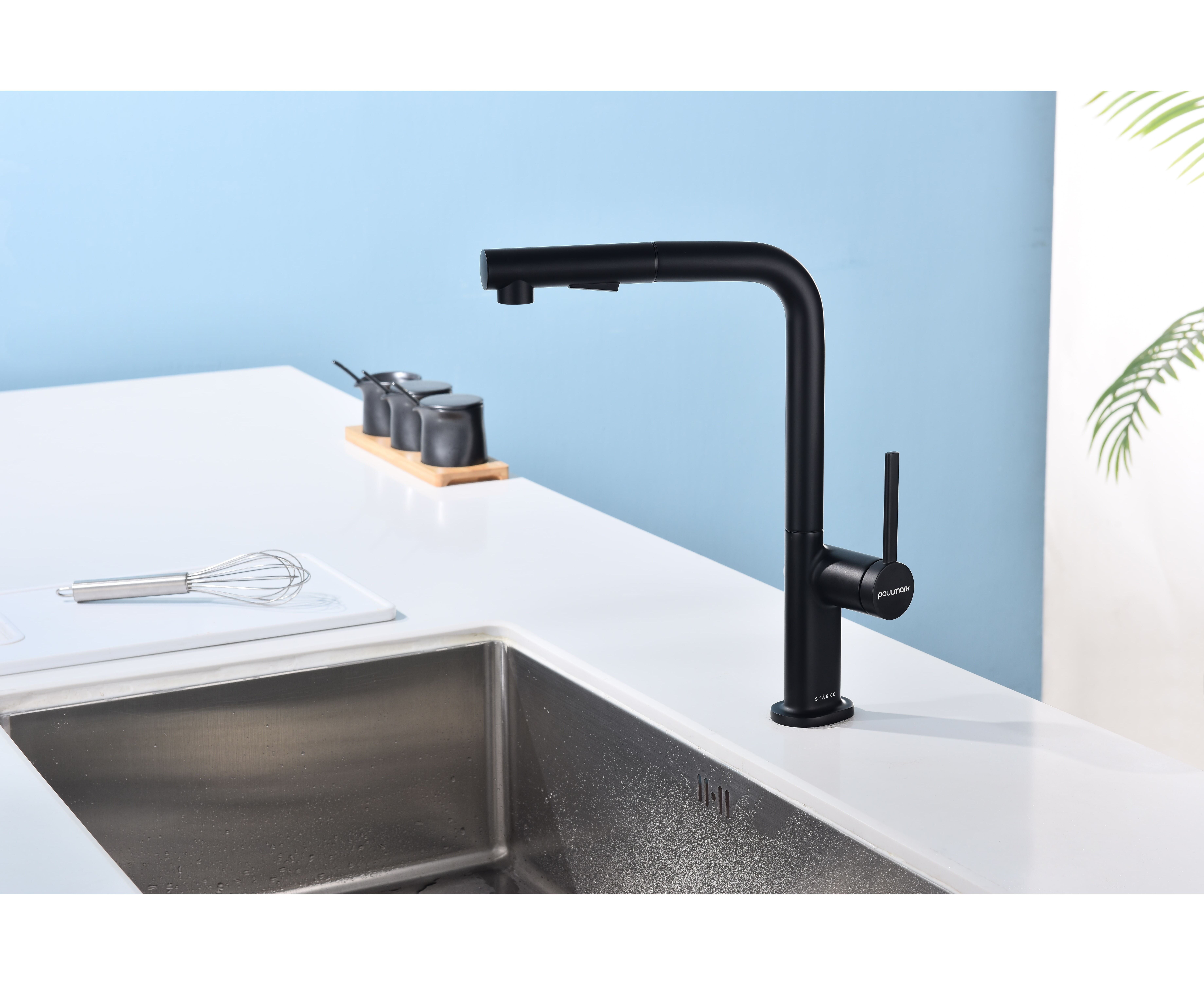 Смеситель латунный с Г-образным поворотным изливом, вращающимся на 180°, и выдвижной лейкой с двумя режимами подачи воды. Переключение между мощной струей и деликатным душем осуществляется эргономичной кнопкой. Функционал смесителя обеспечивает комфорт при мытье посуды, продуктов и уходе за мойкой.