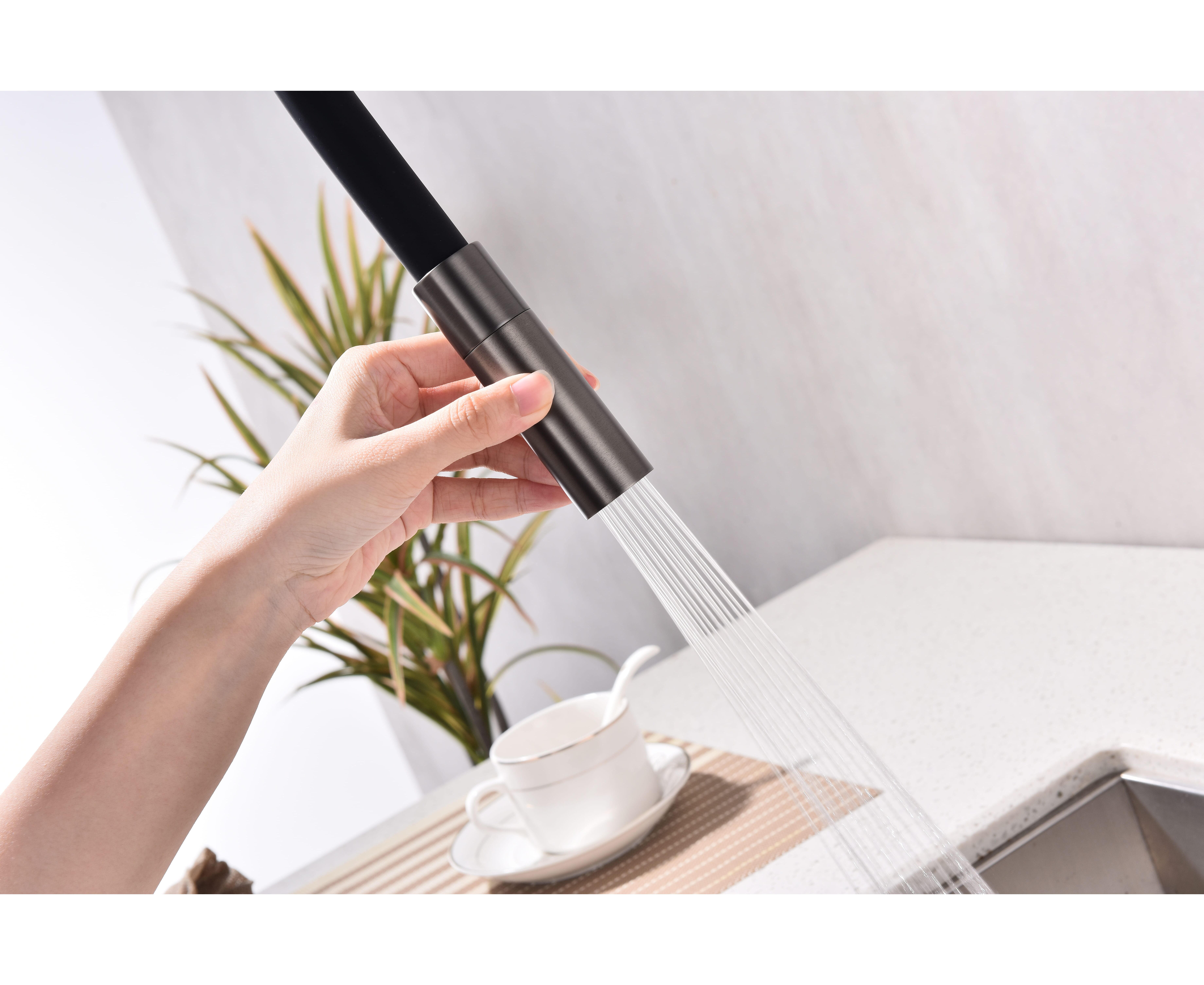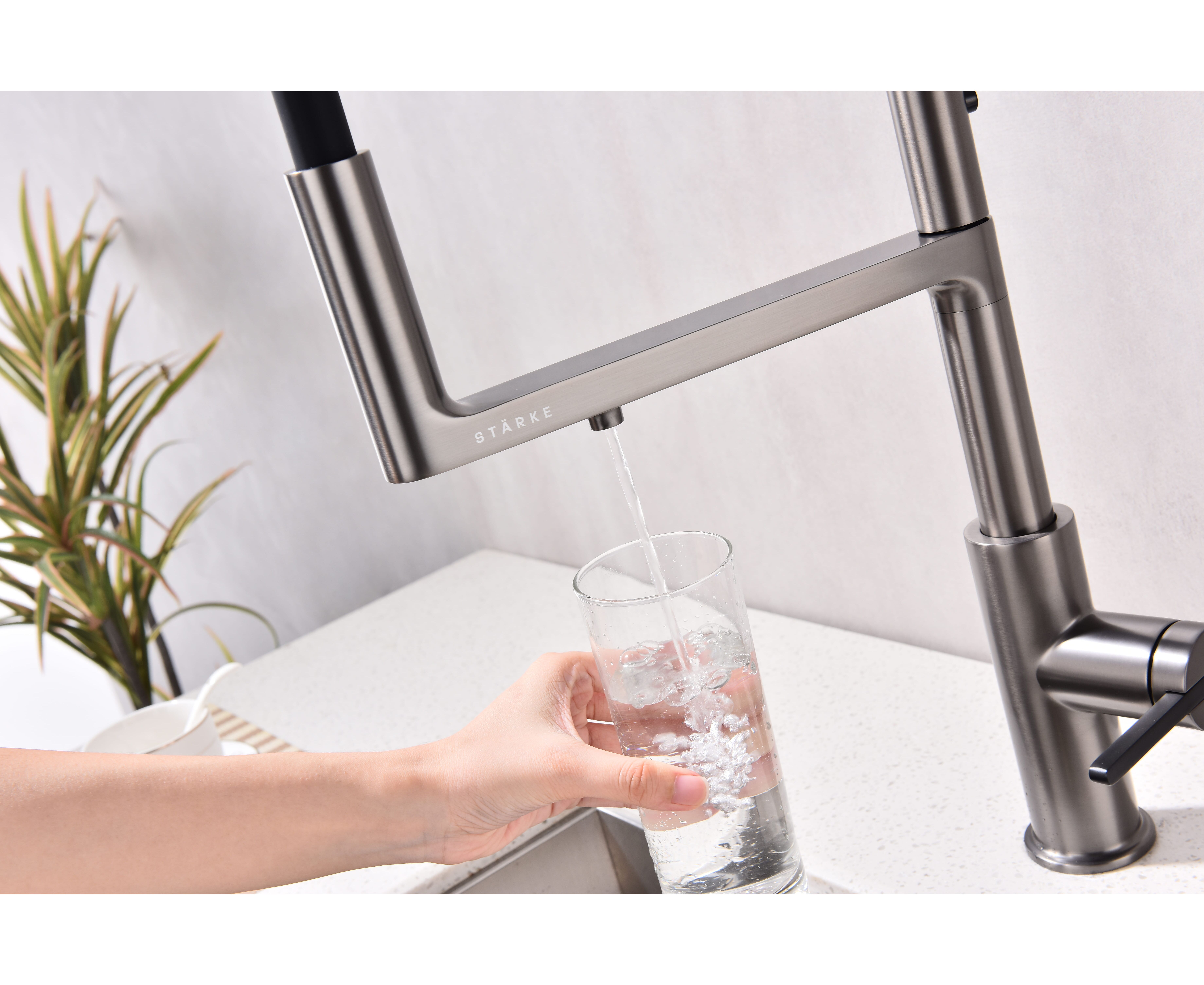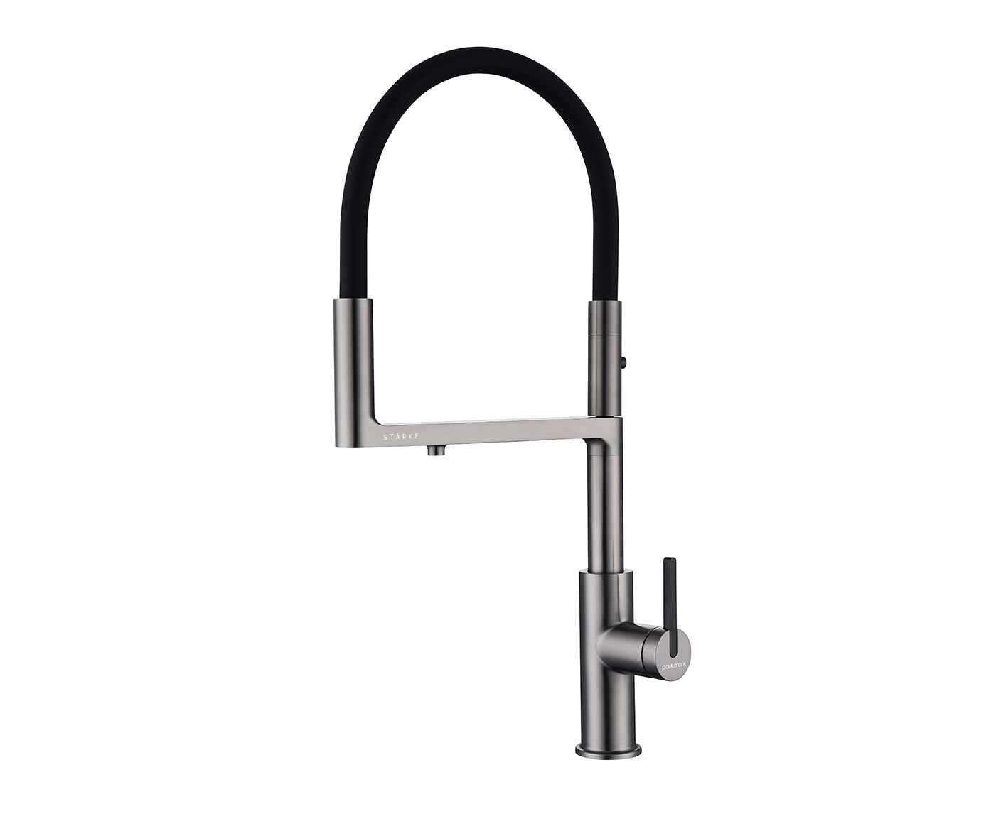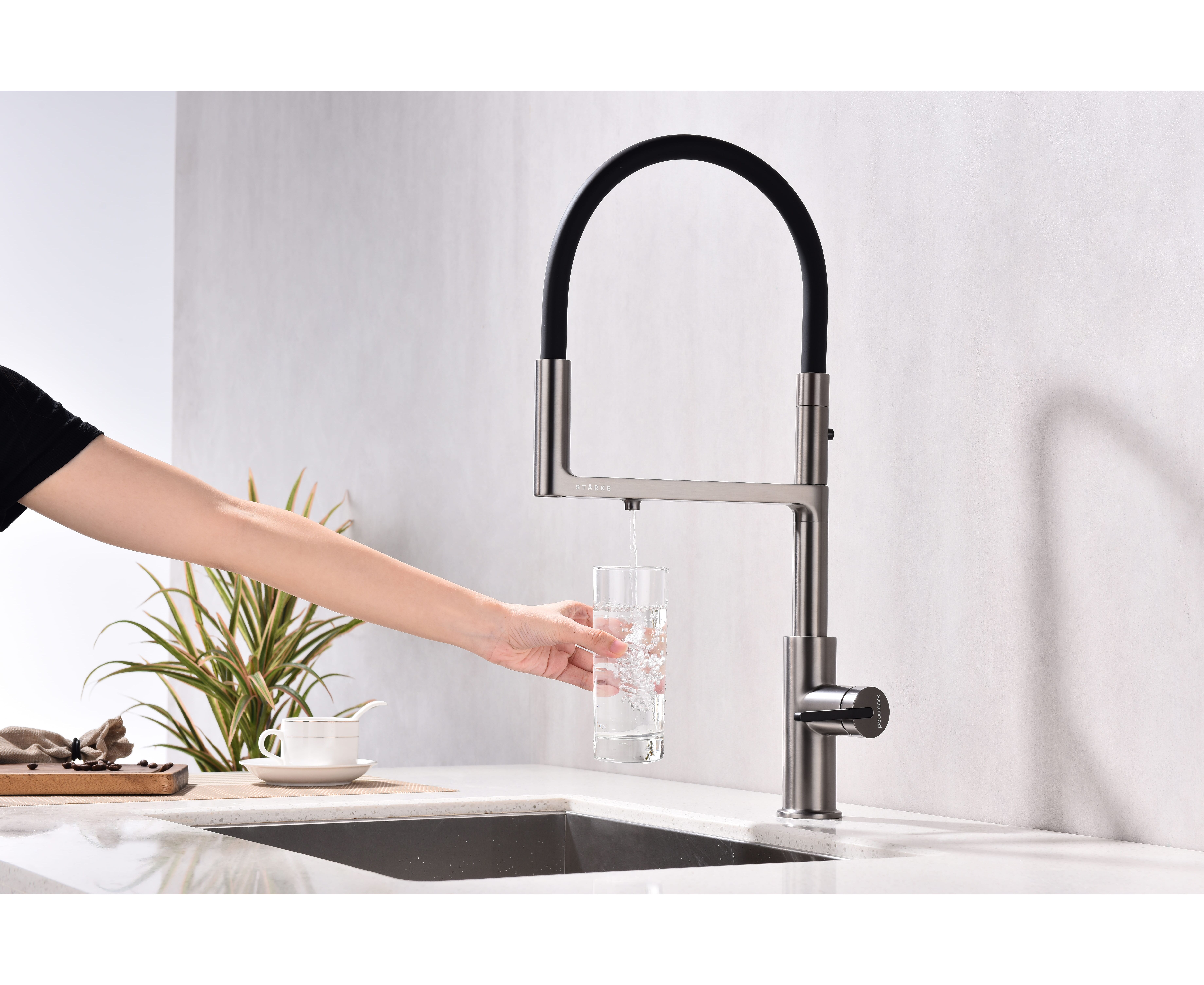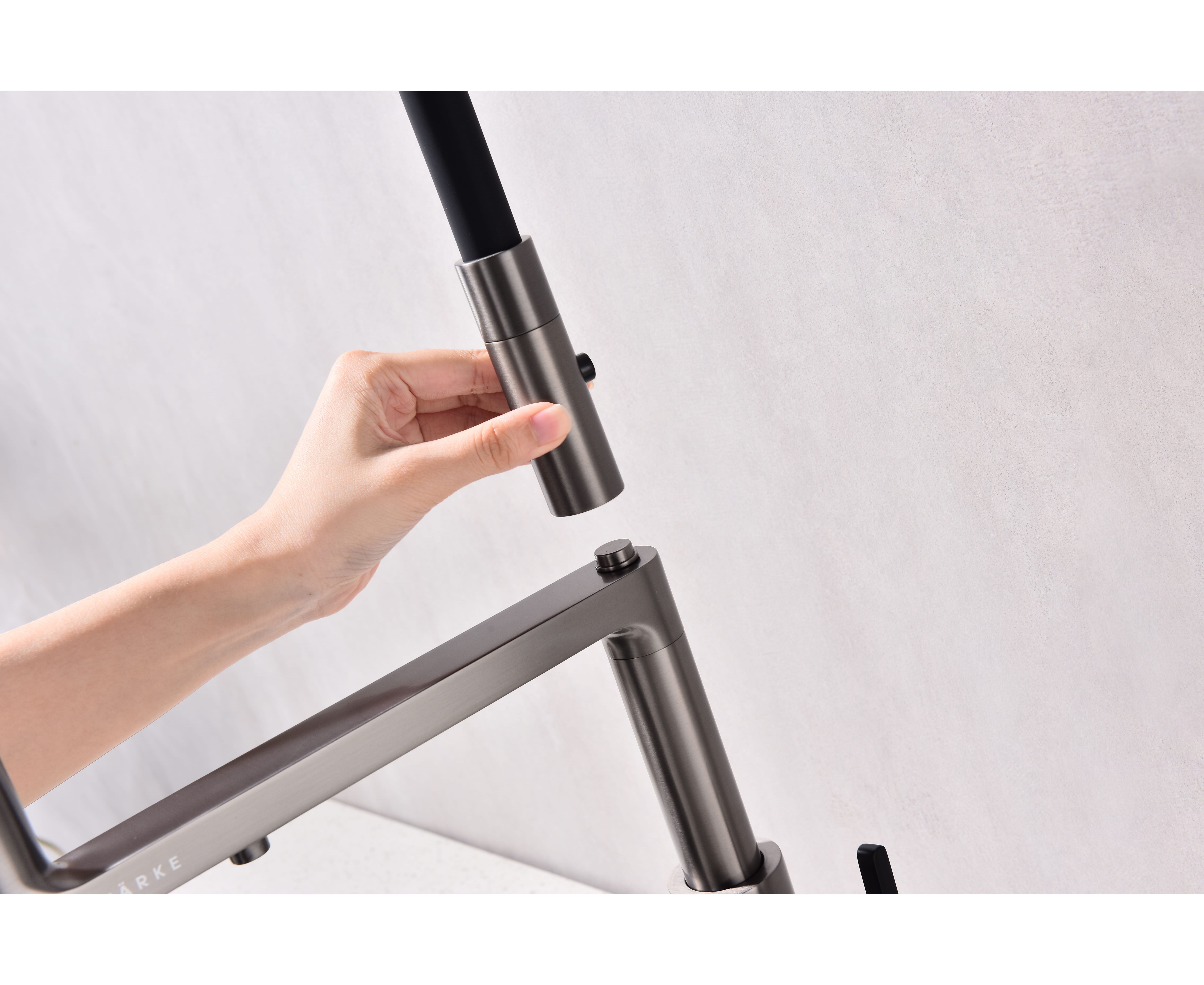 Смеситель с высоким гибким силиконовым изливом, вращающимся на 360°. Магнитный механизм фиксации обеспечивает удобство использования. Два режима подачи воды - мощная струя и экономичный душ - переключаются кнопкой на конце излива. Необычная конструкция излива с фиксацией на основании корпуса смесителя создает большую рабочую зону.