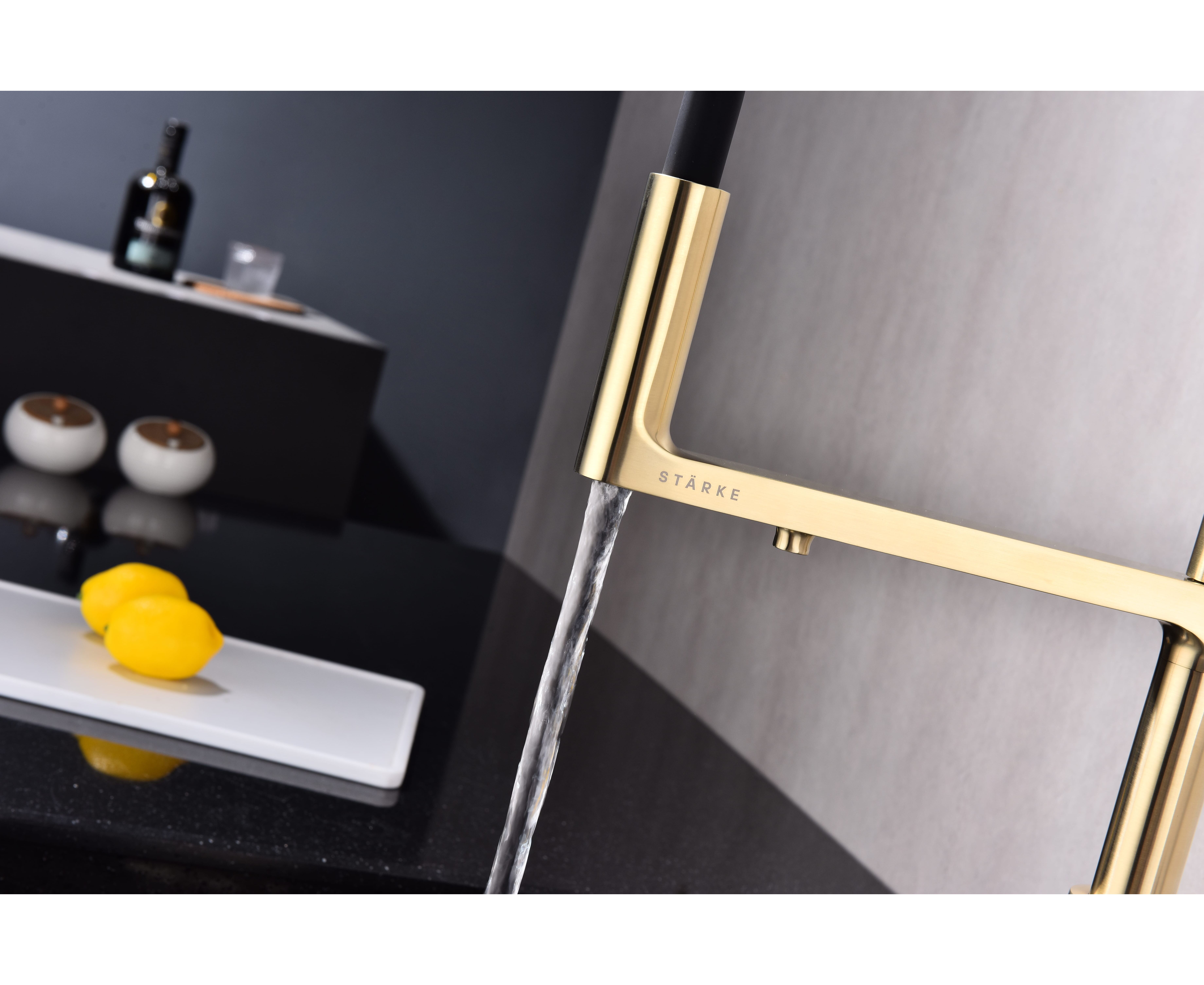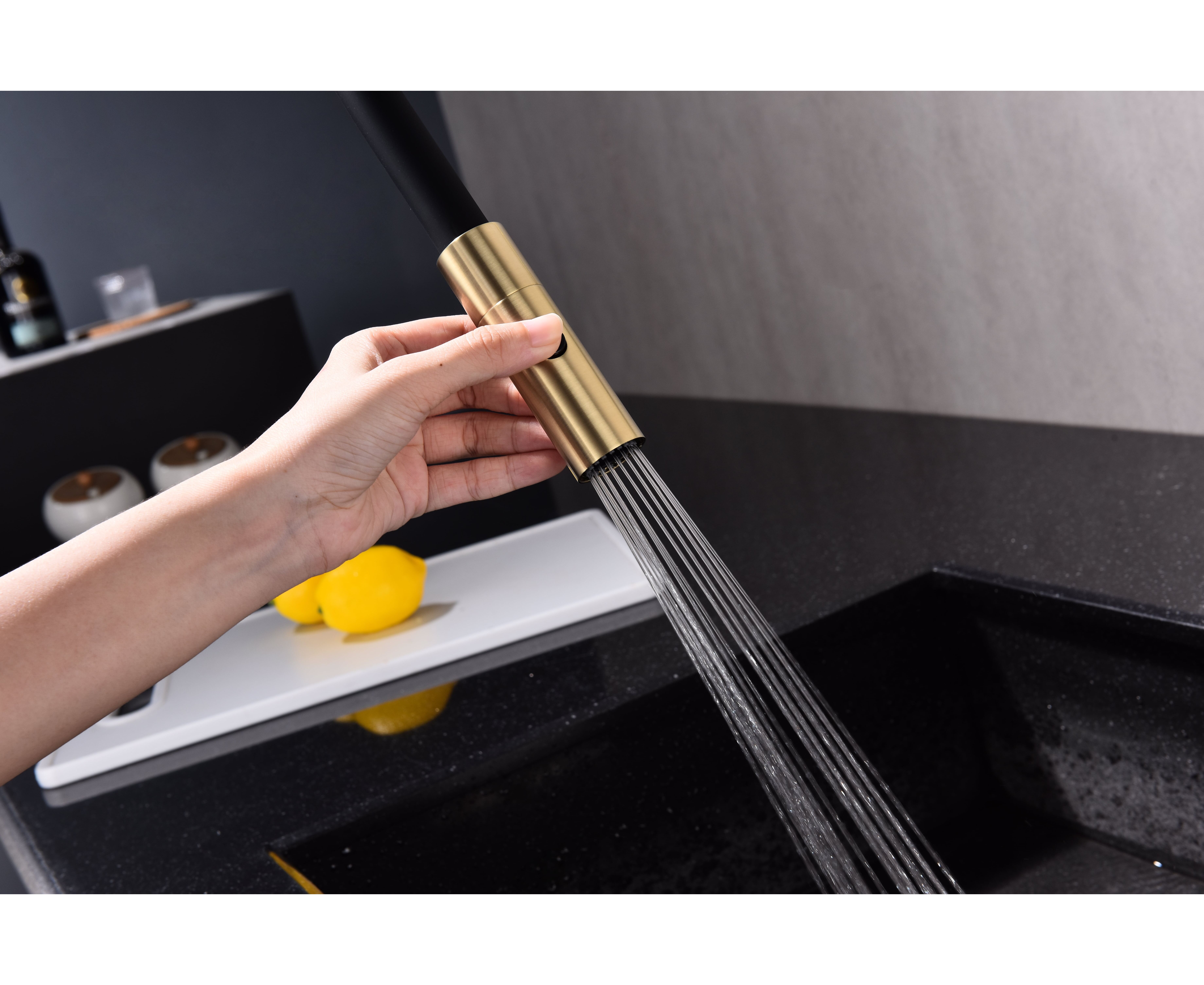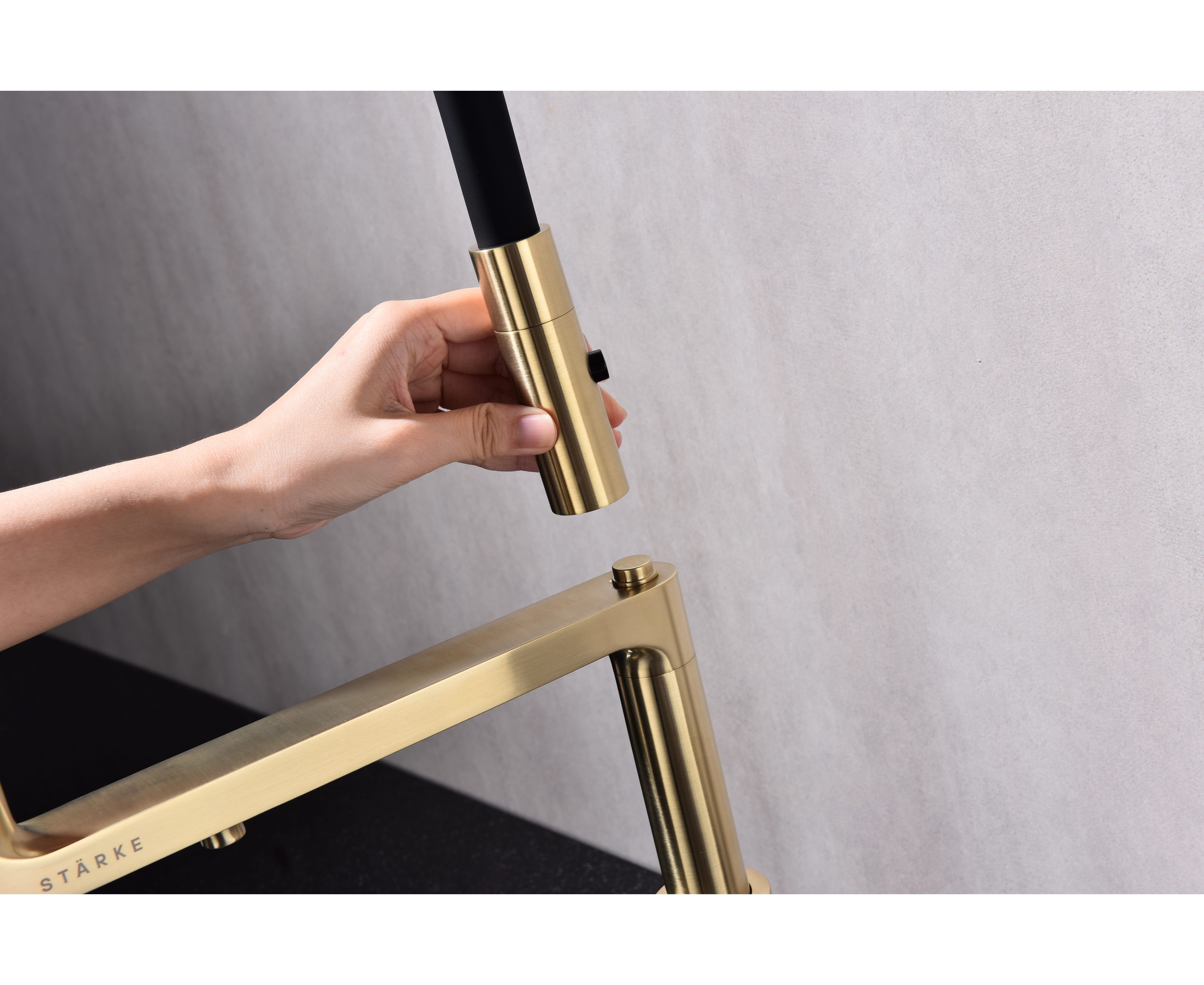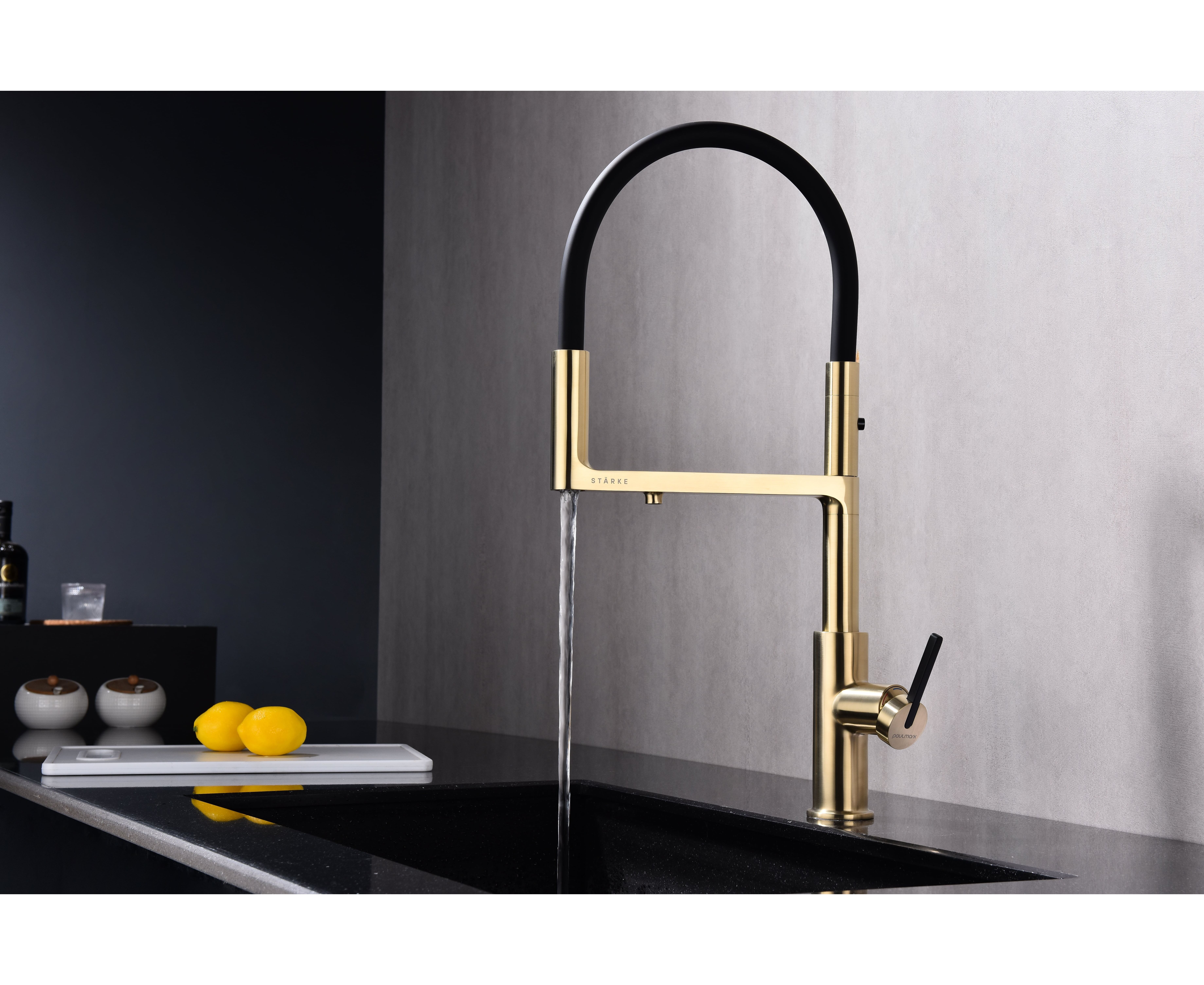 Смеситель с высоким гибким силиконовым изливом, вращающимся на 360°. Магнитный механизм фиксации обеспечивает удобство использования. Два режима подачи воды - мощная струя и экономичный душ - переключаются кнопкой на конце излива. Необычная конструкция излива с фиксацией на основании корпуса смесителя создает большую рабочую зону.
