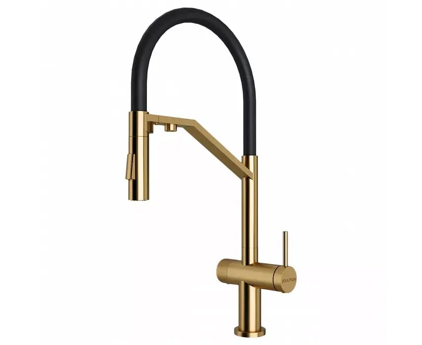 Многофункциональный смеситель для кухни ZENDER оснащен функциями подключения фильтра питьевой воды и гибким силиконовым изливом с двумя режимами подачи водопроводной воды: струя и душ. Для переключения режимов струя/душ служит кнопка на конце излива. Управление питьевой водой производится поворотом ручки, расположенной слева. Питьевая вода подается из отдельного аэратора. Для удобства использования ручка управления питьевой водой имеет декоративные лазерные насечки.