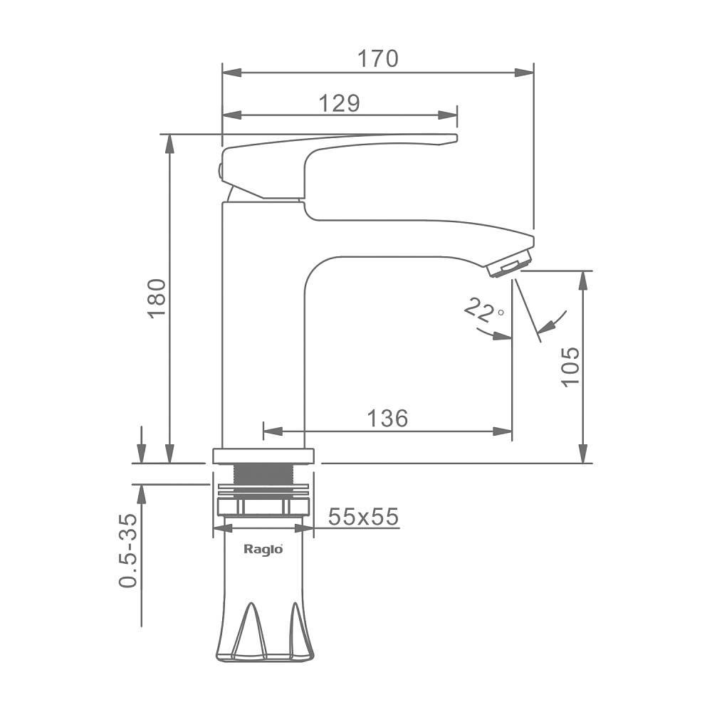 - Смеситель для раковины RAGLО имеет повышенную прочность корпуса.