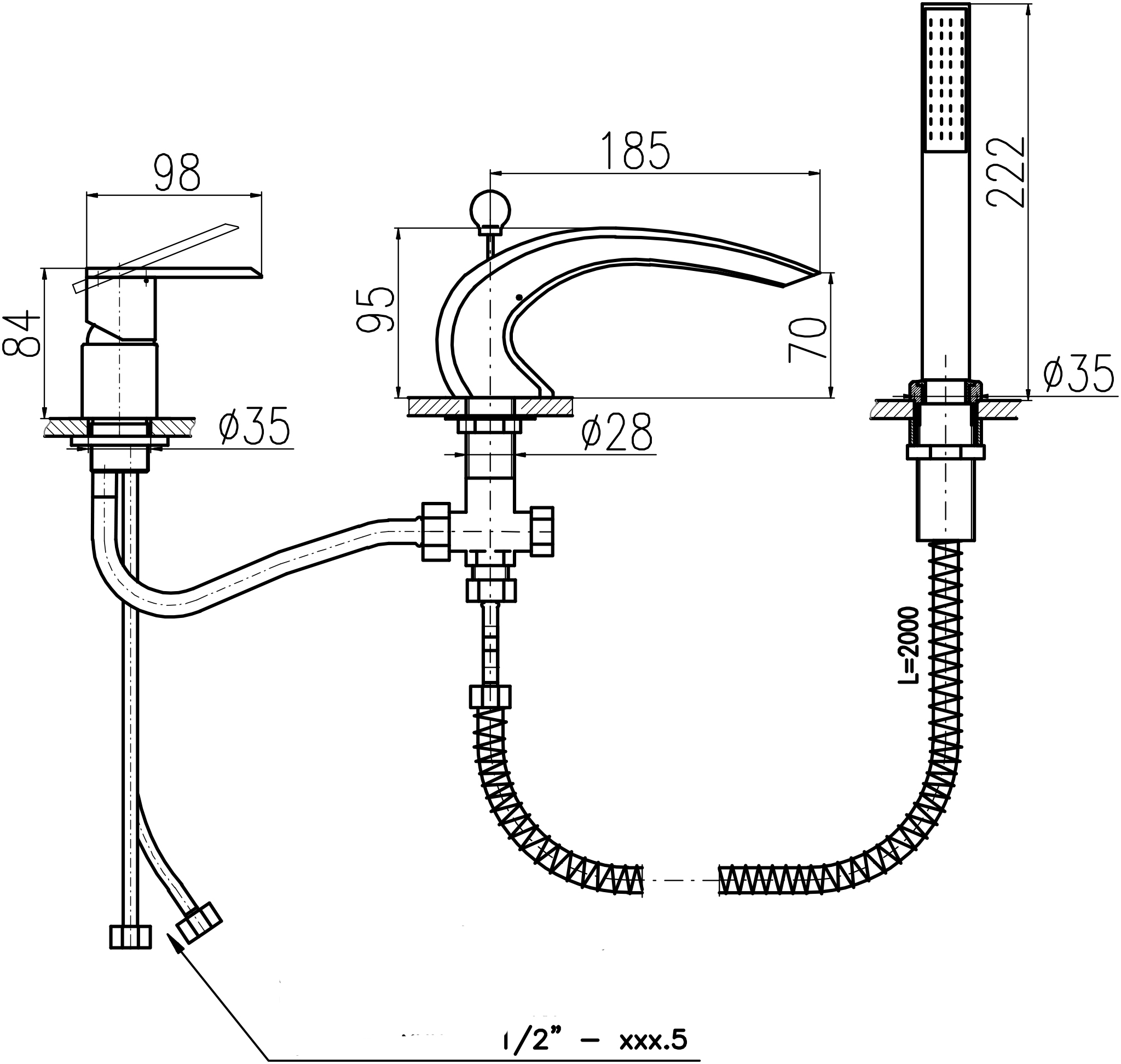 | Оснащение | душевой шланг, переключатель потоков, гибкая подводка, душевая лейка |