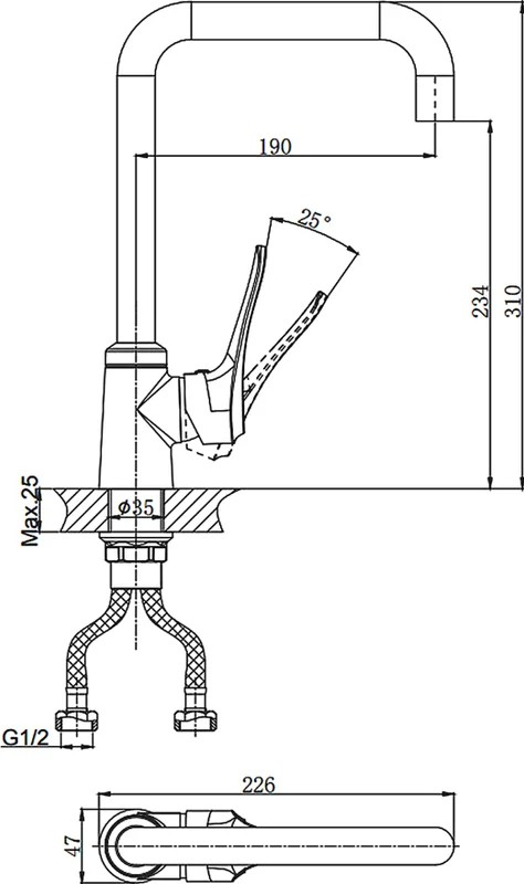 - Смеситель для кухни RUSH арт. JA0735-23 с поворотным изливом из коллекции Jawa с металлической ручкой, изготовлен из высококачественной латуни и имеет рычажное управление